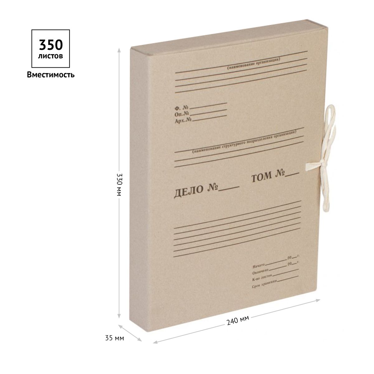 Короб архивный с завязками OfficeSpace, разборный, 35мм, клапан из переплетного картона, до 350л.