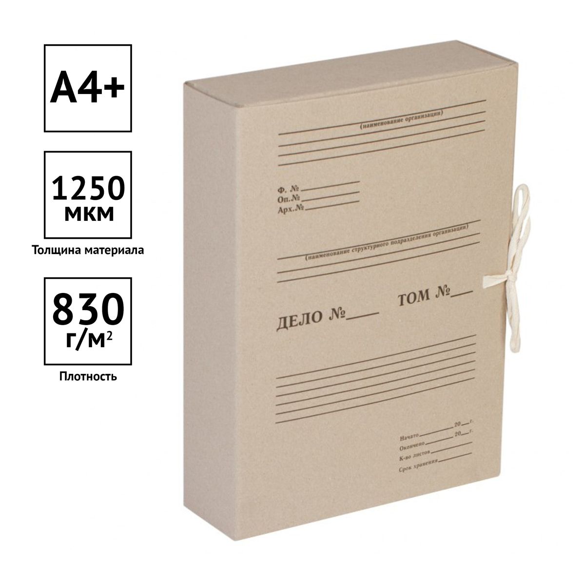 Короб архивный с завязками OfficeSpace, разборный, 80мм, клапан из переплетного картона, до 800л.