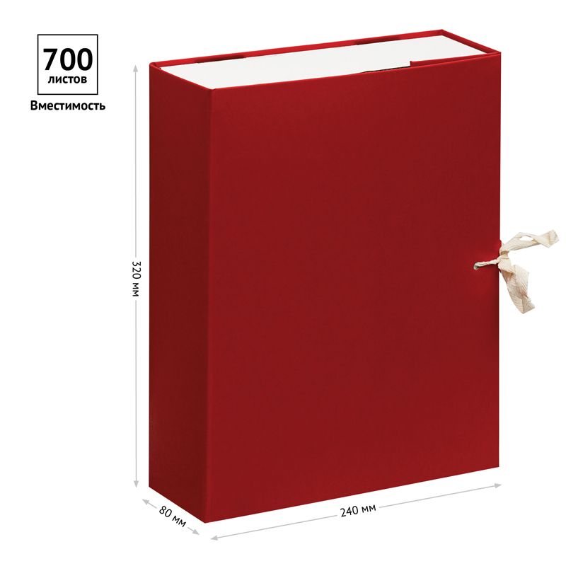 Короб архивный с завязками OfficeSpace разборный, БВ, 80мм, красный, клапан МГК