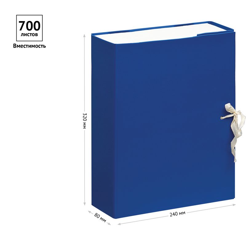 Короб архивный с завязками OfficeSpace разборный, БВ, 80мм, синий, клапан МГК