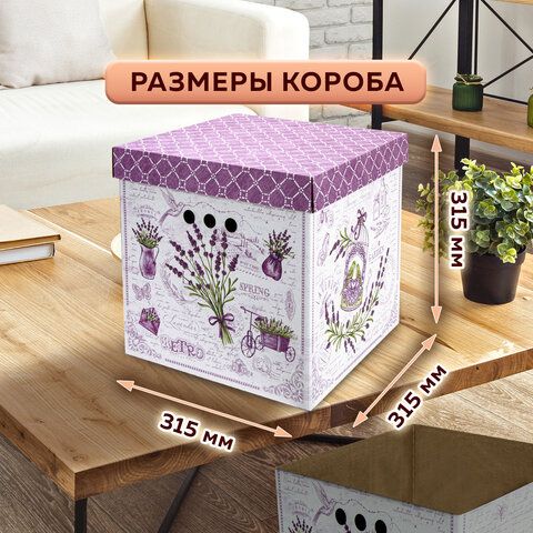 Короб для хранения из плотного микрогофрокартона 315х315х315 мм, КОМПЛЕКТ 3 шт., BRAUBERG HOME "Лаванда", 271817