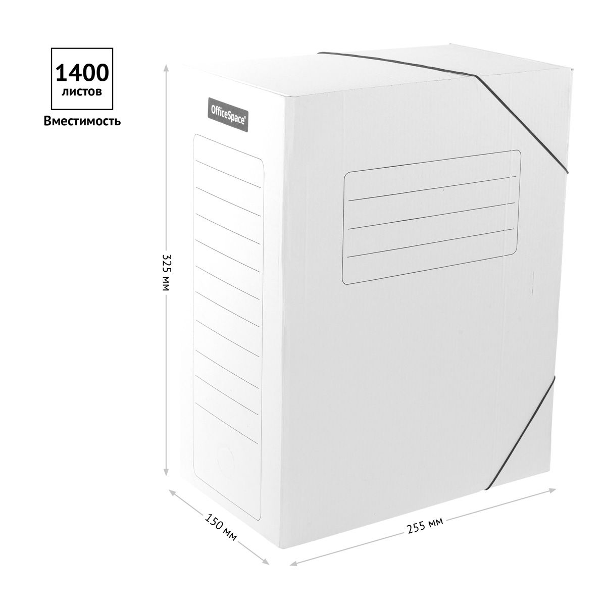Папка архивная на резинках OfficeSpace, микрогофрокартон, 150мм, белый, до 1400л.
