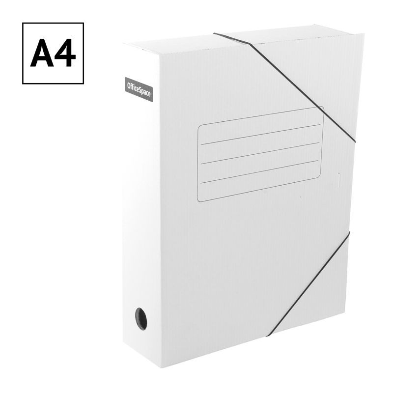 Папка архивная на резинках OfficeSpace, микрогофрокартон, 75мм, белая, до 700л.