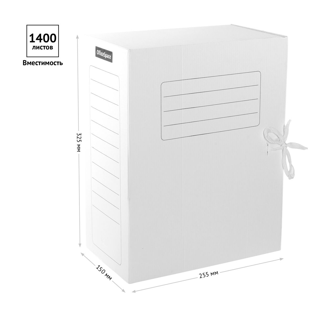 Папка архивная с завязками OfficeSpace, микрогофрокартон, 150мм, белый, до 1400л.