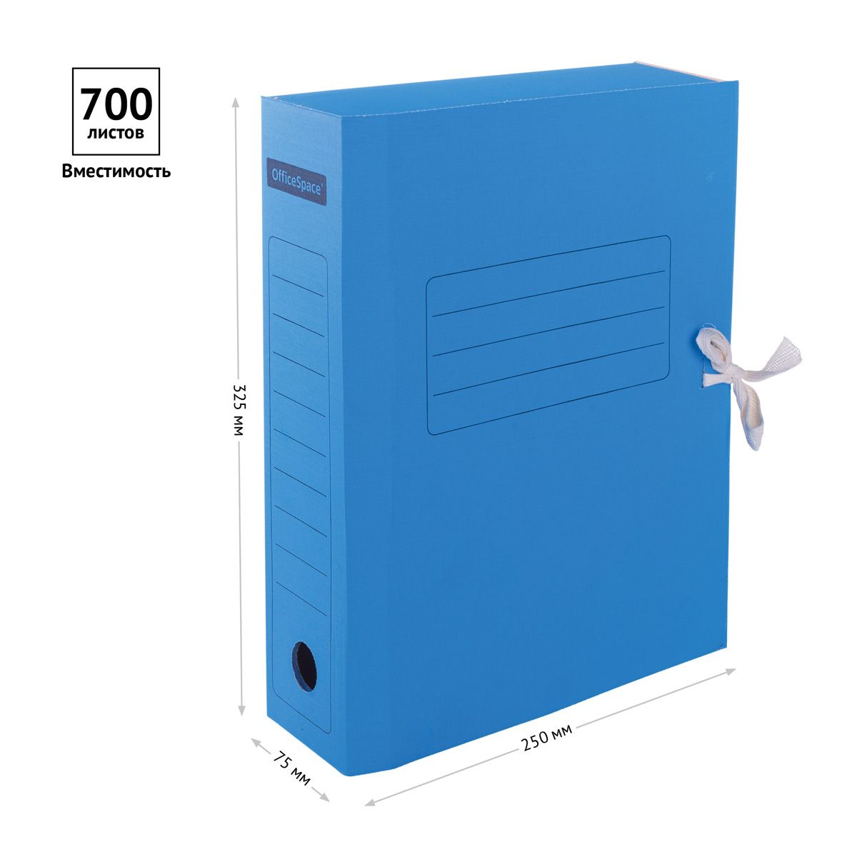 Папка архивная с завязками OfficeSpace, микрогофрокартон, 75мм, синий, до 700л.