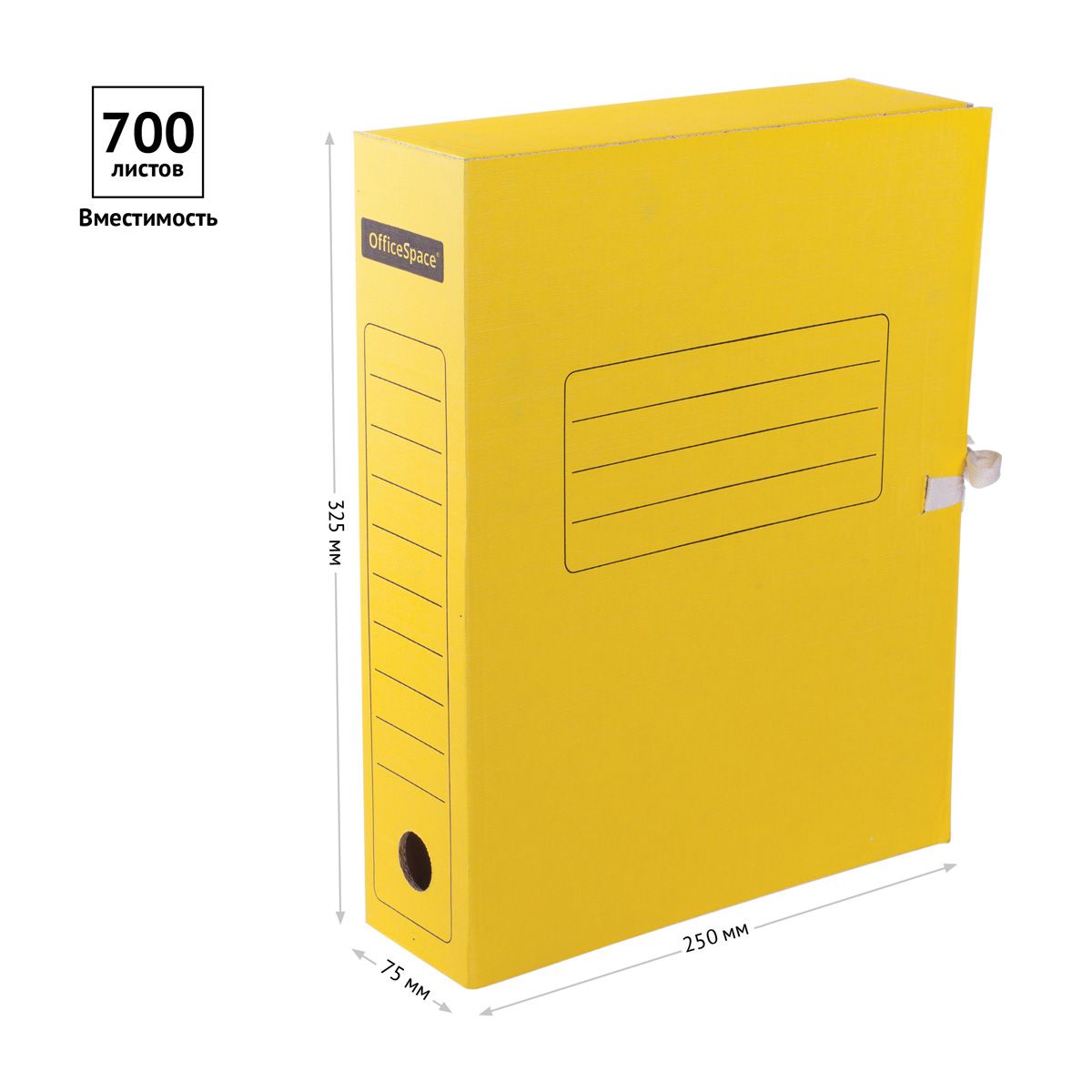 Папка архивная с завязками OfficeSpace, микрогофрокартон, 75мм, желтый, до 700л.