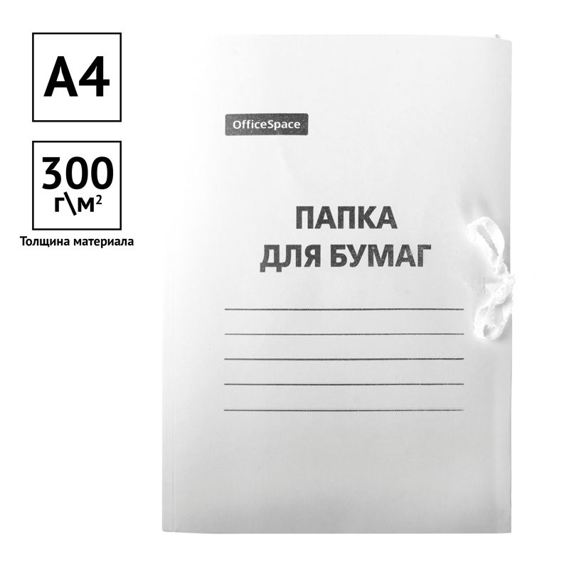 Папка для бумаг с завязками OfficeSpace, картон мелованный, 300г/м2, белый, до 200л.