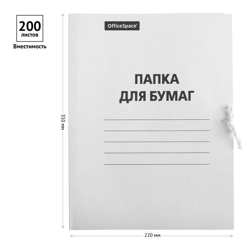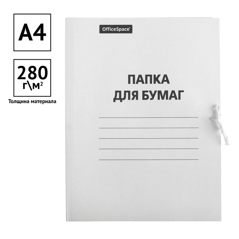 Папка для бумаг с завязками OfficeSpace, картон немелованный, 280г/м2, белый, до 200л.