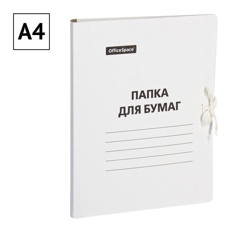 Папка для бумаг с завязками OfficeSpace, картон немелованный, 380г/м2, белый, до 400л.