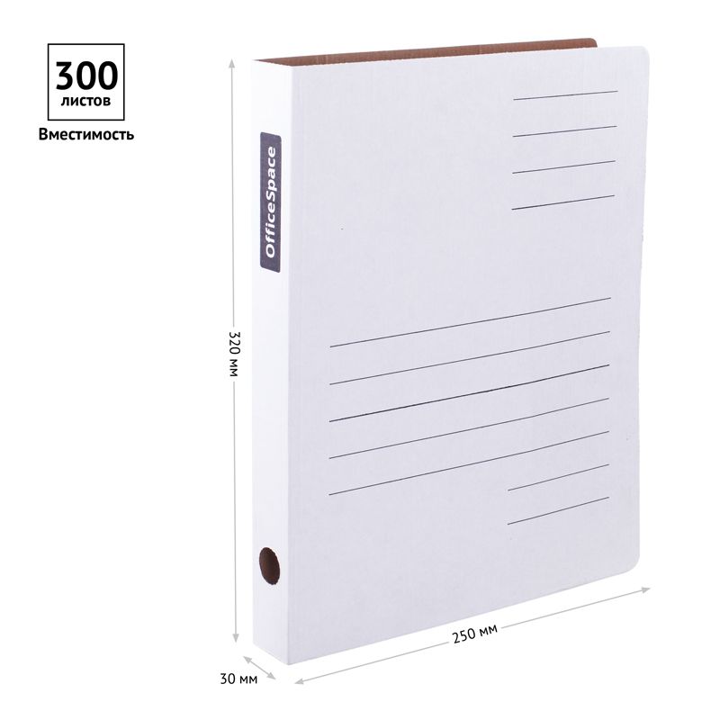 Скоросшиватель из микрогофрокартона OfficeSpace, ширина корешка 30мм, белый, до 300л.