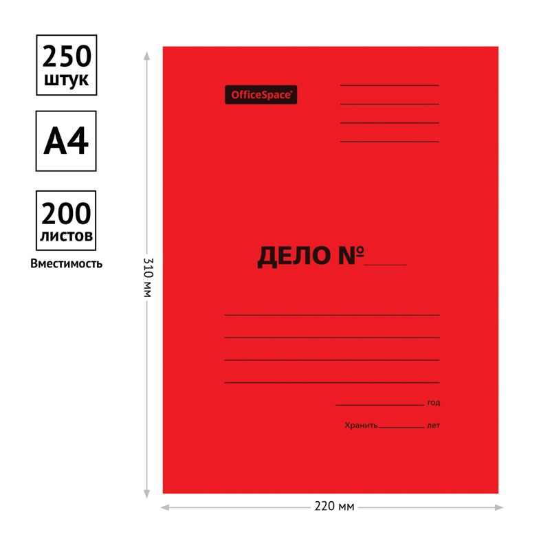Скоросшиватель OfficeSpace "Дело", картон мелованный, 300г/м2, красный, пробитый, до 200л.