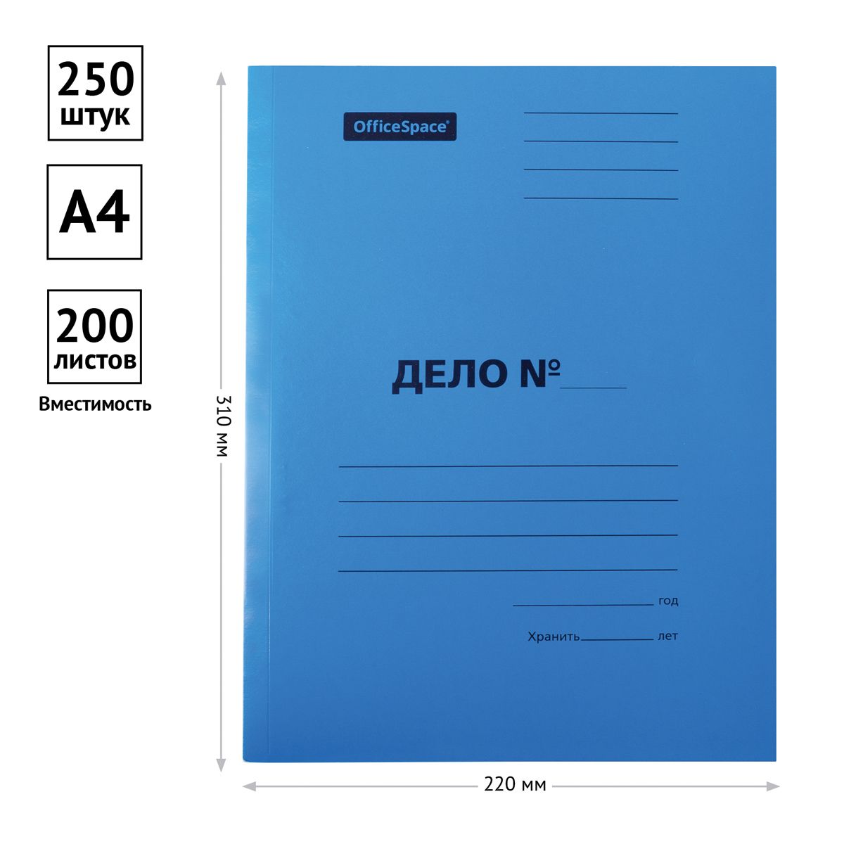 Скоросшиватель OfficeSpace "Дело", картон мелованный, 300г/м2, синий, пробитый, до 200л.