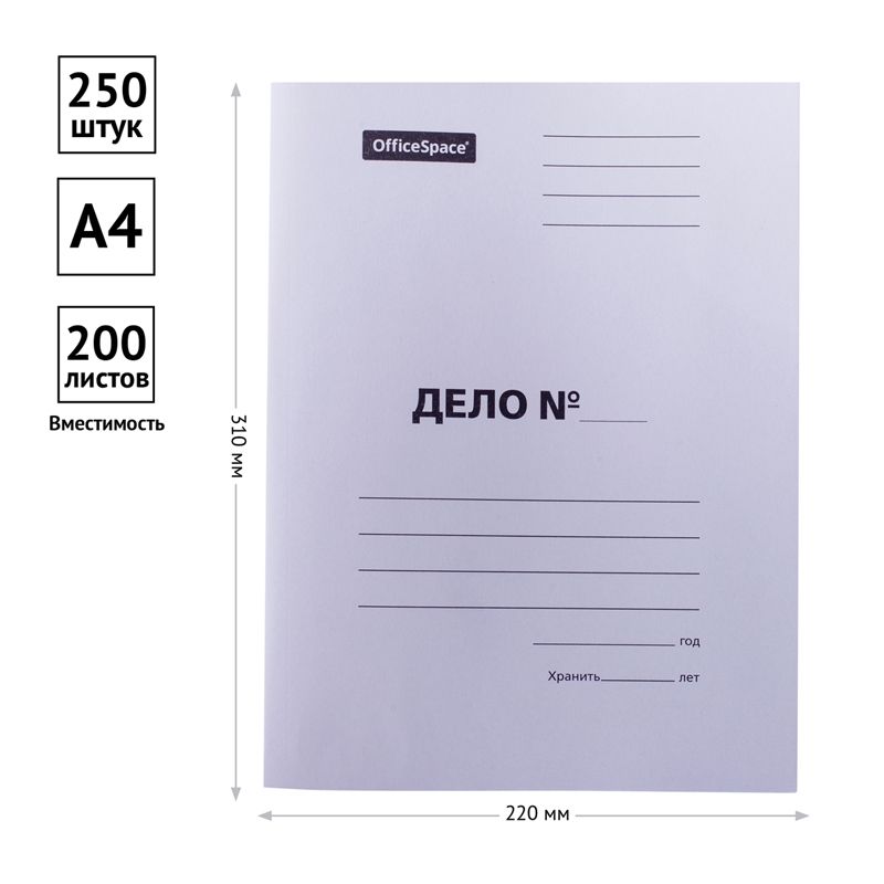 Скоросшиватель OfficeSpace "Дело", картон немелованный, 220г/м2, белый, пробитый, до 200л.