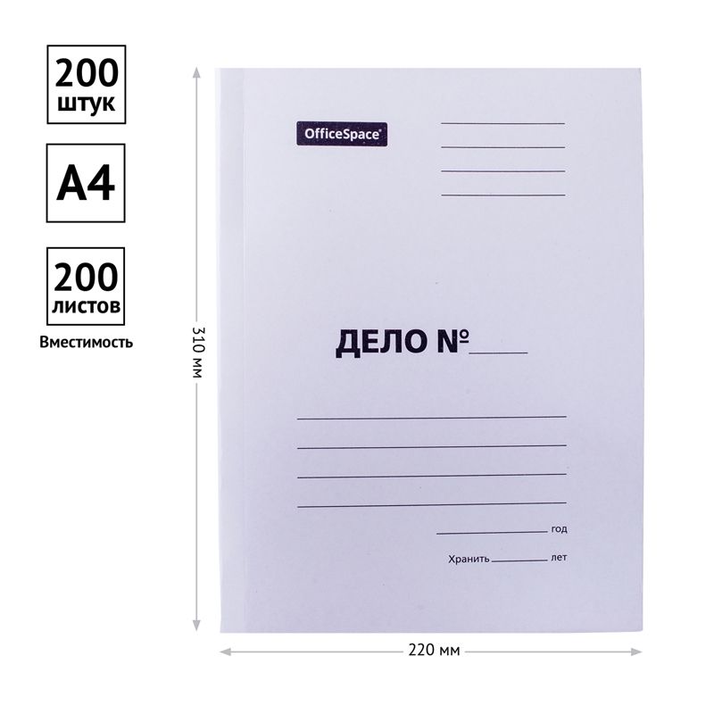 Скоросшиватель OfficeSpace "Дело", картон немелованный, 280г/м2, белый, пробитый, до 200л.