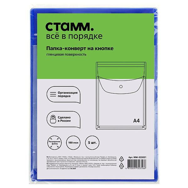 Папки изготовлены из прочного поливинилхлорида (ПВХ) или полипропилена, как, например, «Berlingo Папка-скоросшиватель А4, 180 мкм» , с глянцевой или матовой поверхностью. Модели, такие как «Стамм Папка-конверт на кнопке А4» , имеют непрозрачные или цветные покрытия для эстетичного вида.