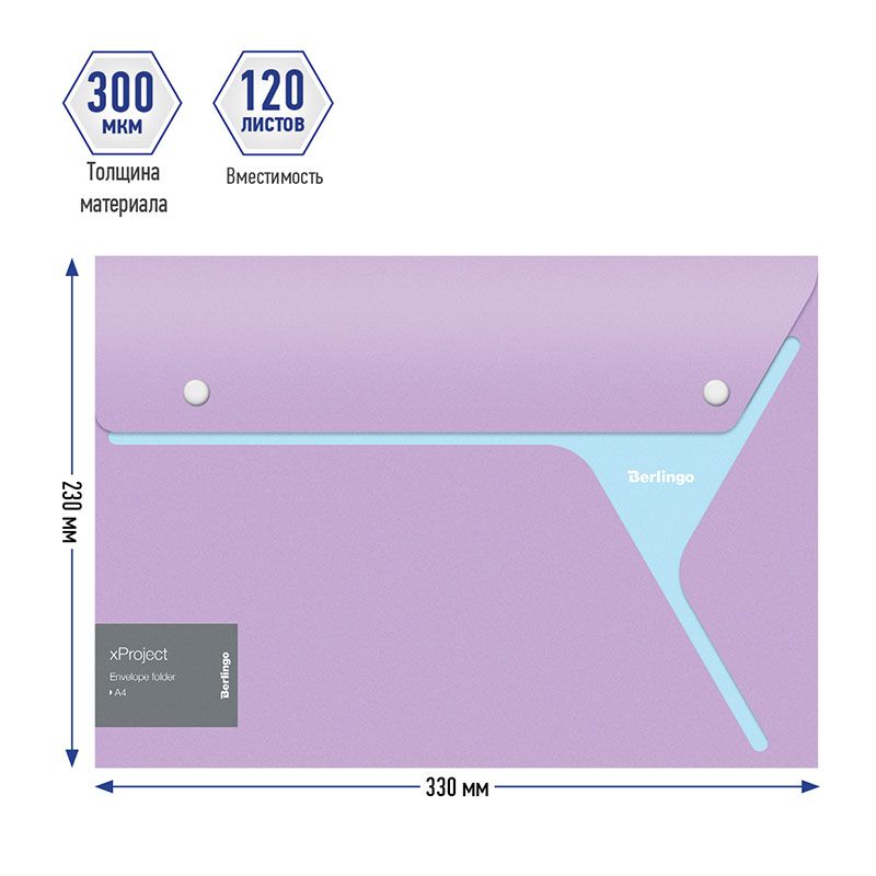 Папка-конверт на 2 кнопках Berlingo "xProject" А4, фиолетовая/голубая, 300мкм