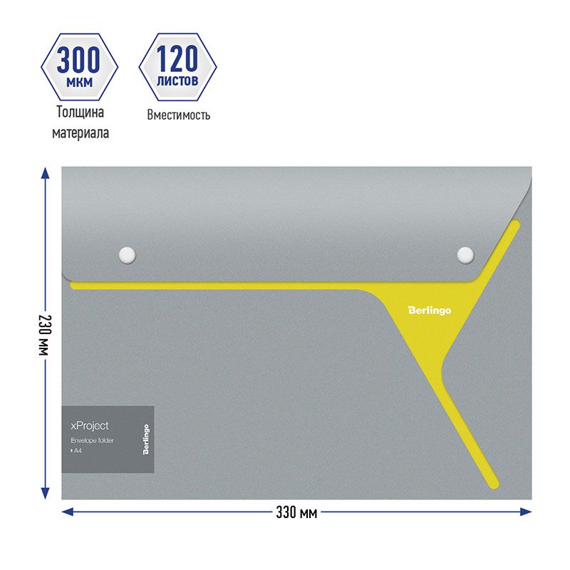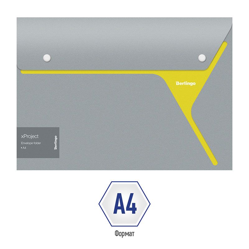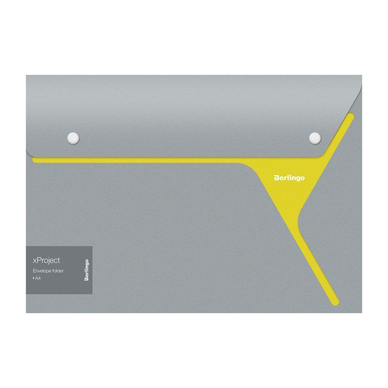 Папка-конверт на 2 кнопках Berlingo "xProject" А4, серая/желтая, 300мкм