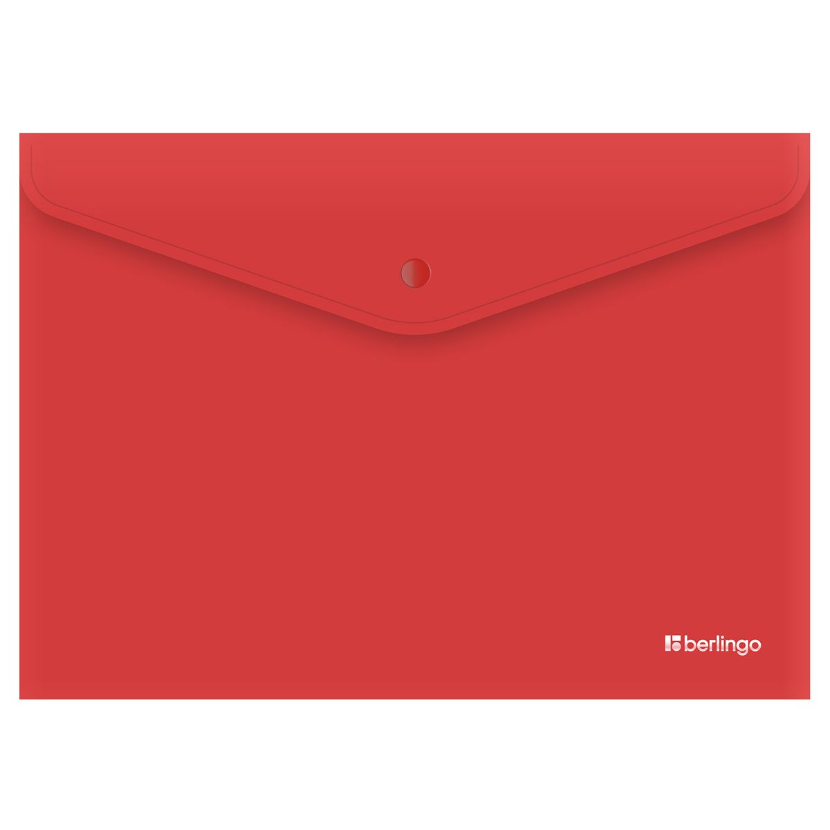 Папка-конверт на кнопке Berlingo "City Style", А4, 200мкм, непрозрачная, красная