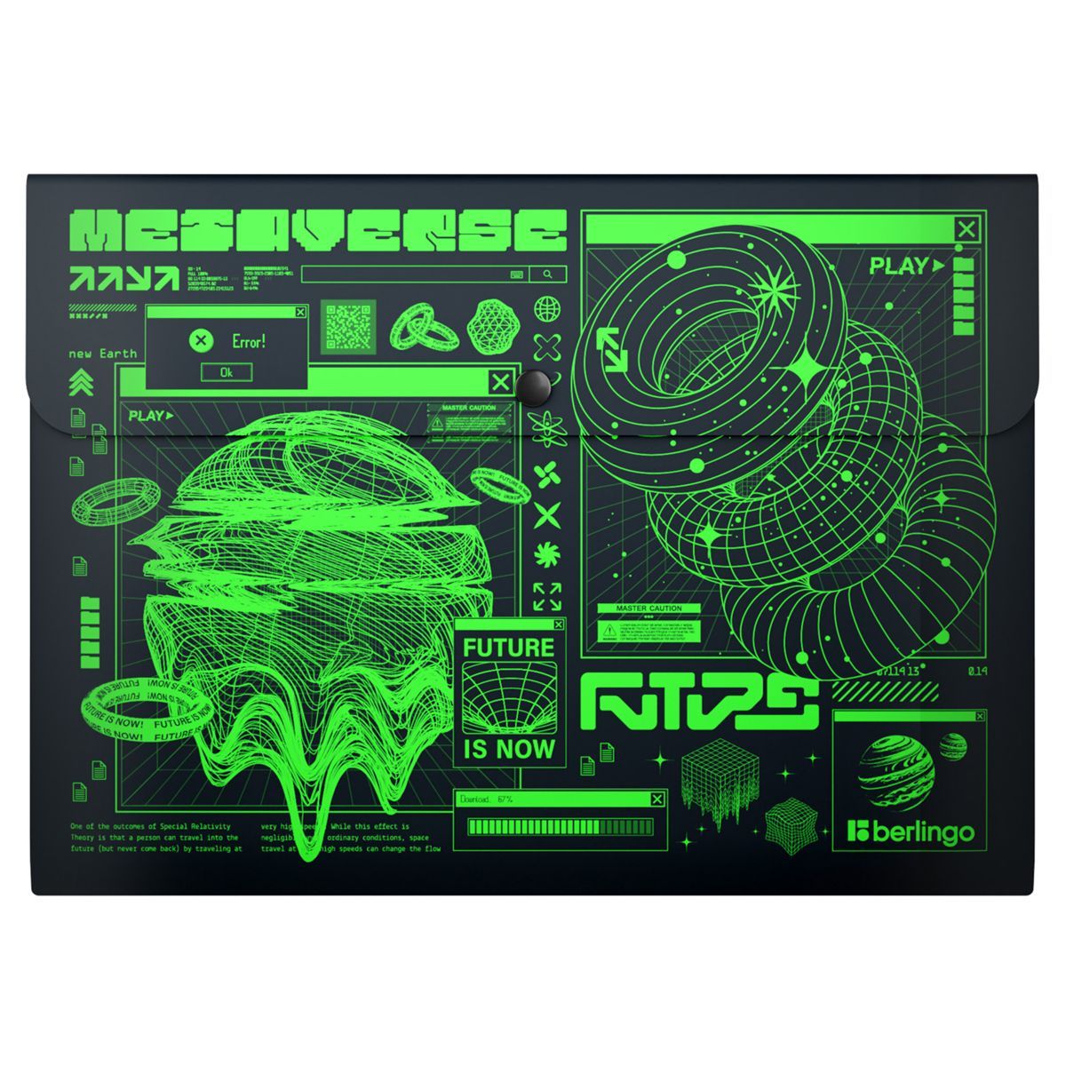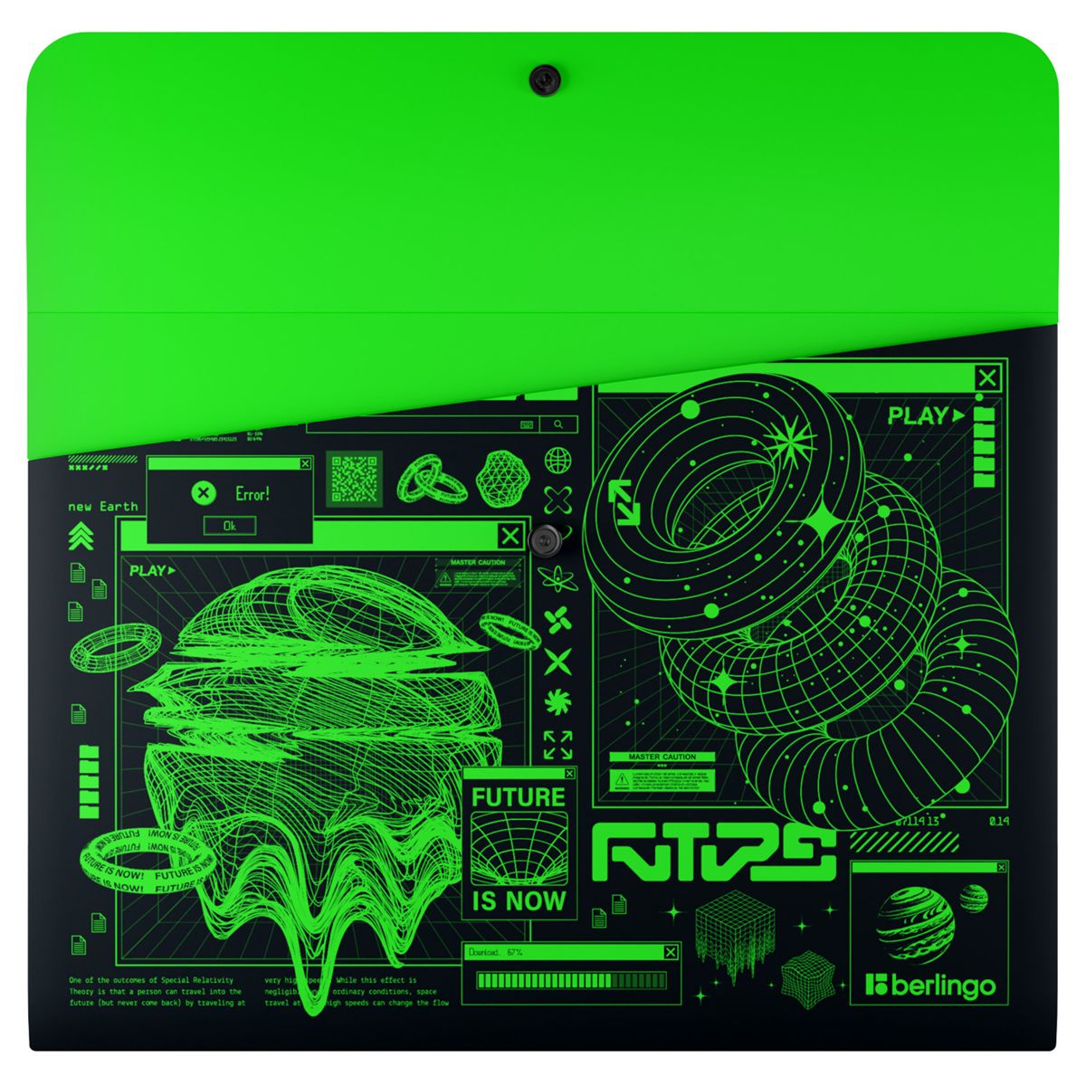 Папка-конверт на кнопке Berlingo "Future Tech", А4, 330мкм, с рисунком