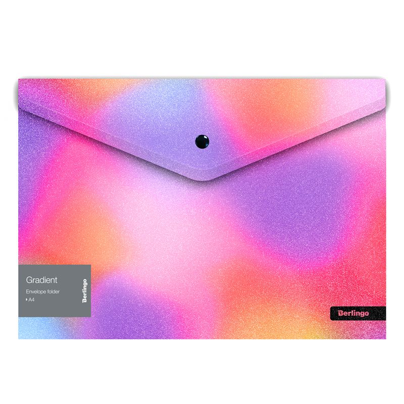 Папка-конверт на кнопке Berlingo "Gradient" А4, 180мкм, с рисунком, глиттер-эффект, ассорти