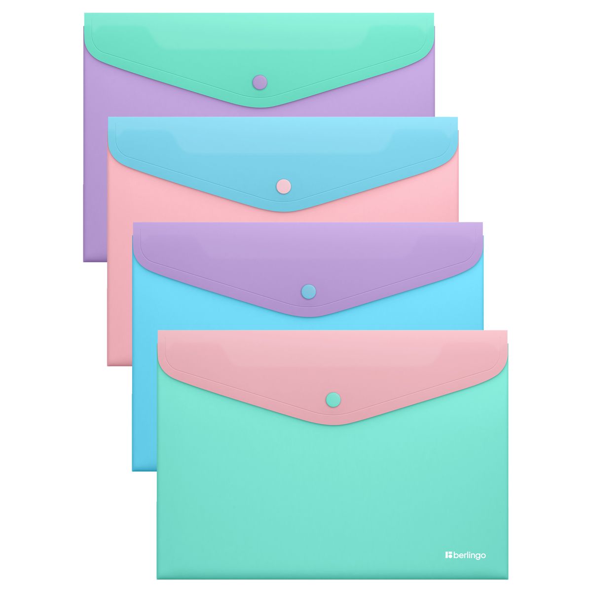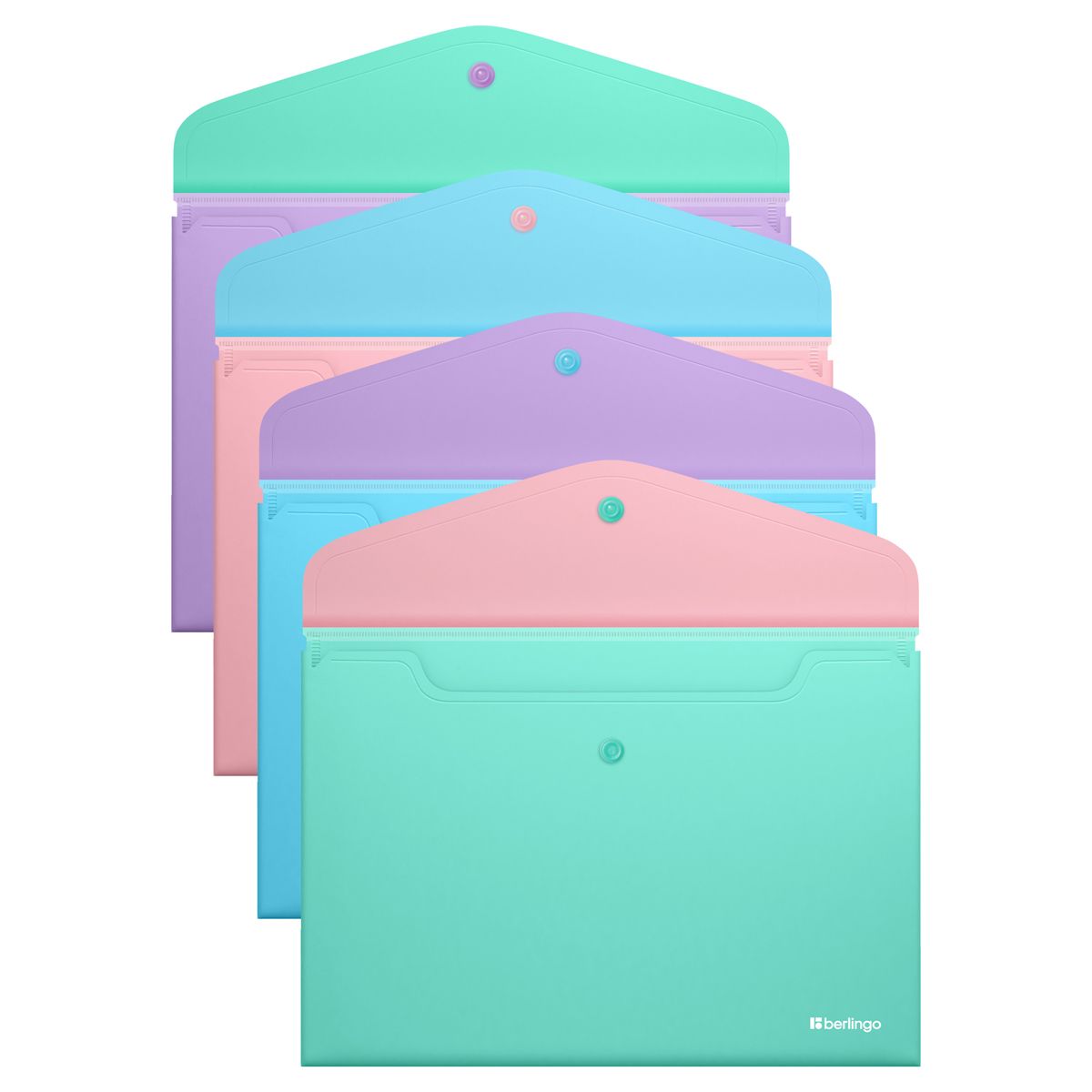 Папка-конверт на кнопке Berlingo "Haze" А4, 200мкм, софт-тач, с цветным клапаном, ассорти