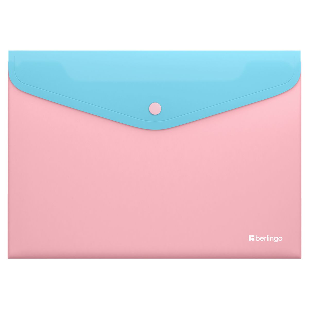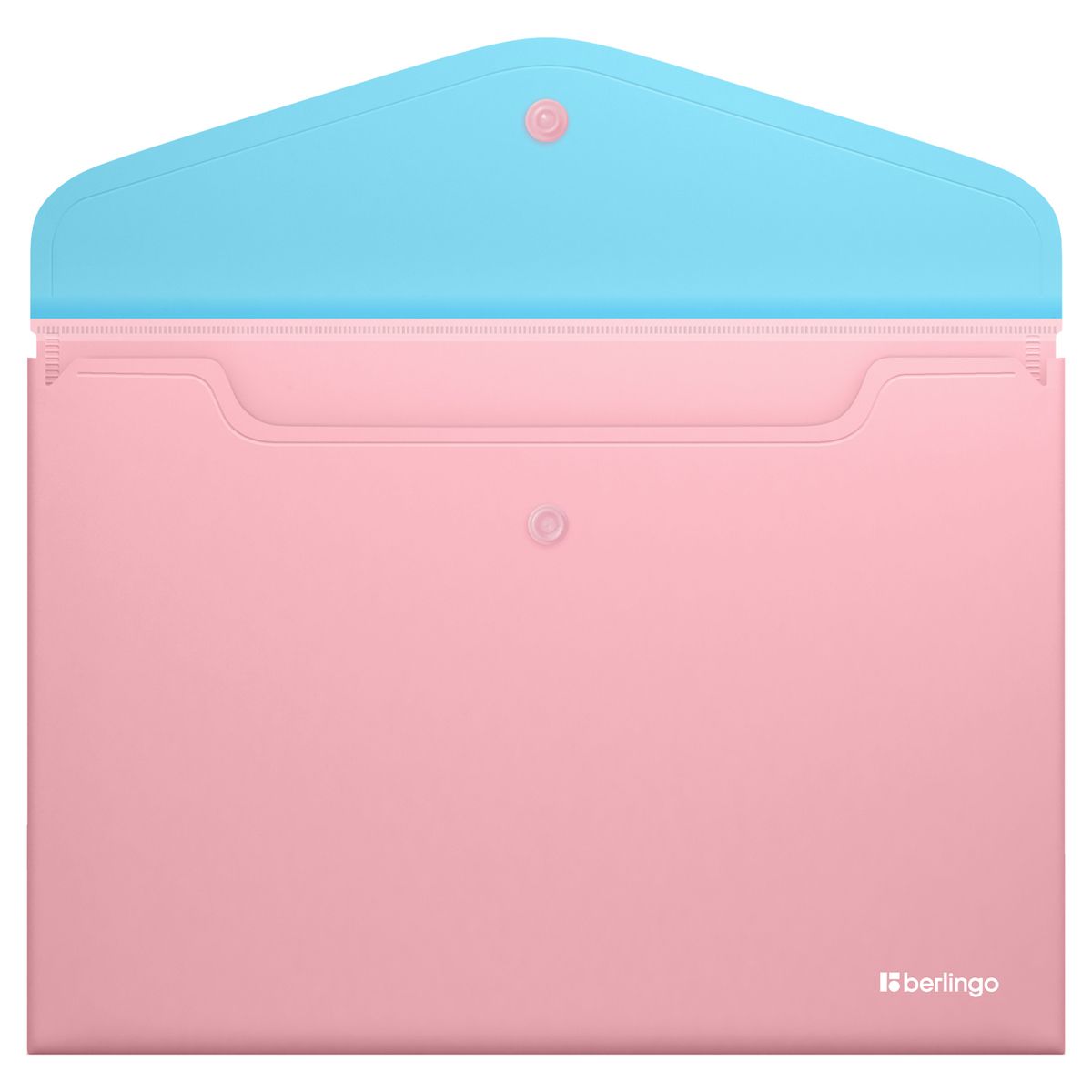 Папка-конверт на кнопке Berlingo "Haze" А4, 200мкм, софт-тач, с цветным клапаном, голубая/розовая