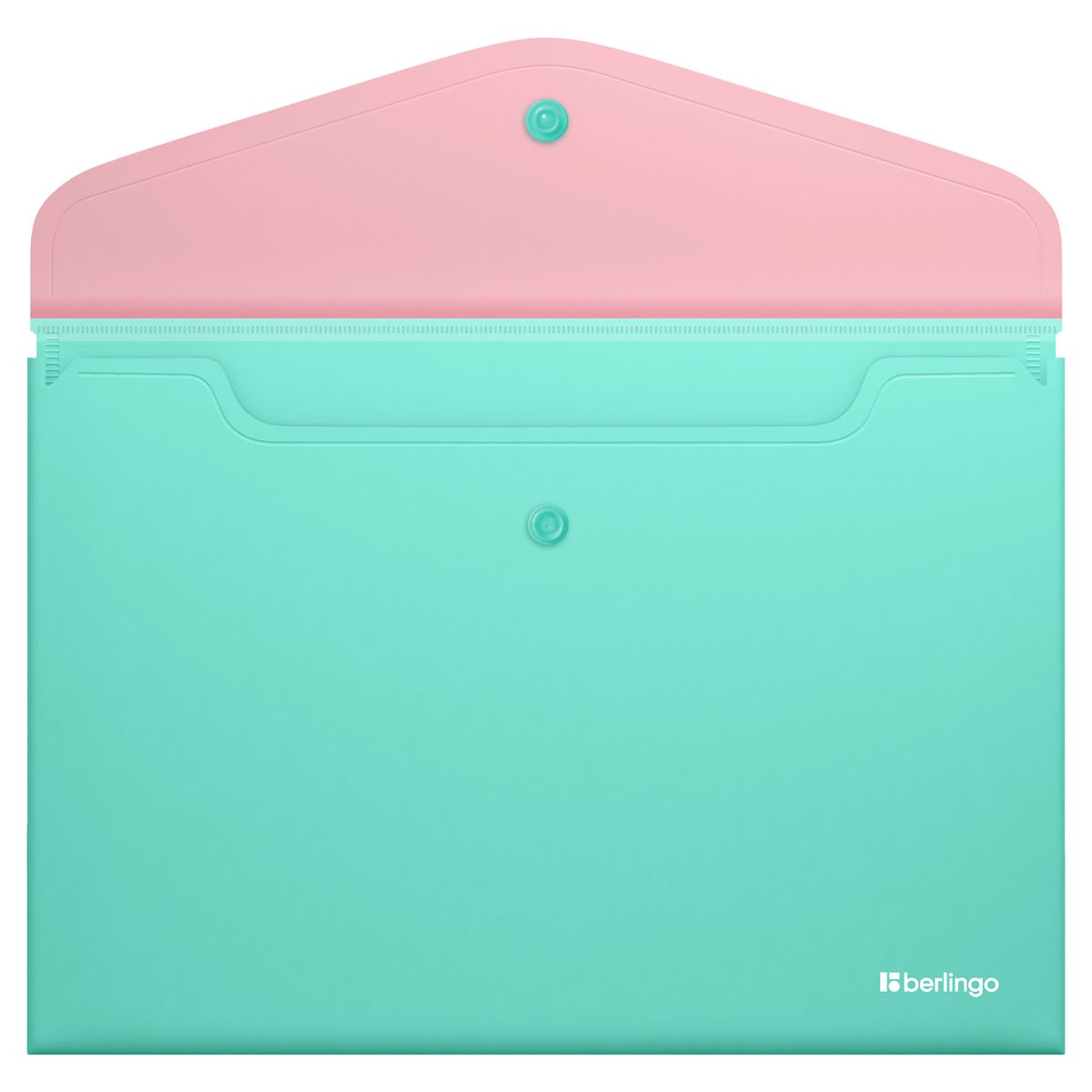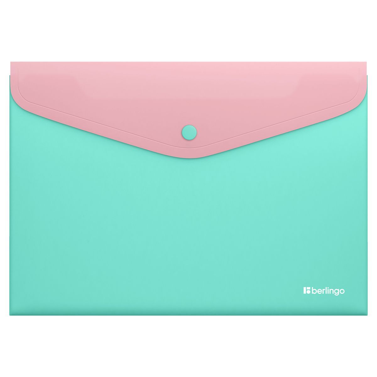 Папка-конверт на кнопке Berlingo "Haze" А4, 200мкм, софт-тач, с цветным клапаном, розовая/мятная