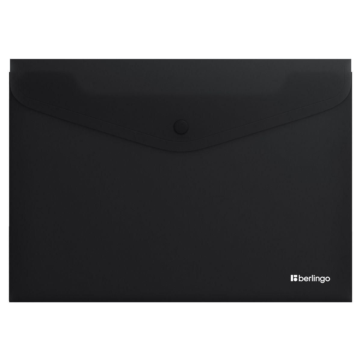 Папка-конверт на кнопке Berlingo "Soft Touch", А4, 200мкм, софт-тач, черная