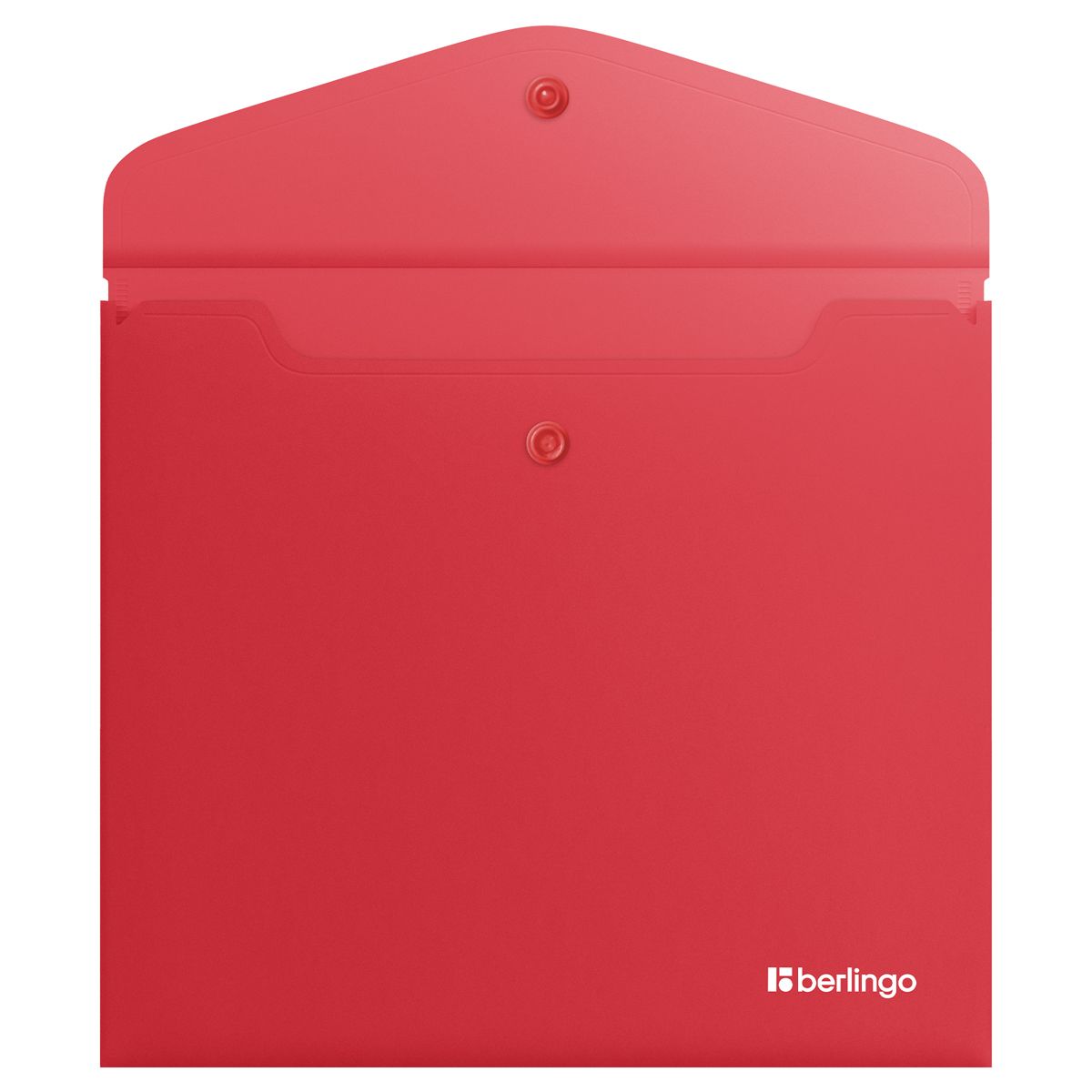 Папка-конверт на кнопке Berlingo "Soft Touch", А5+, 200мкм, софт-тач, коралловая