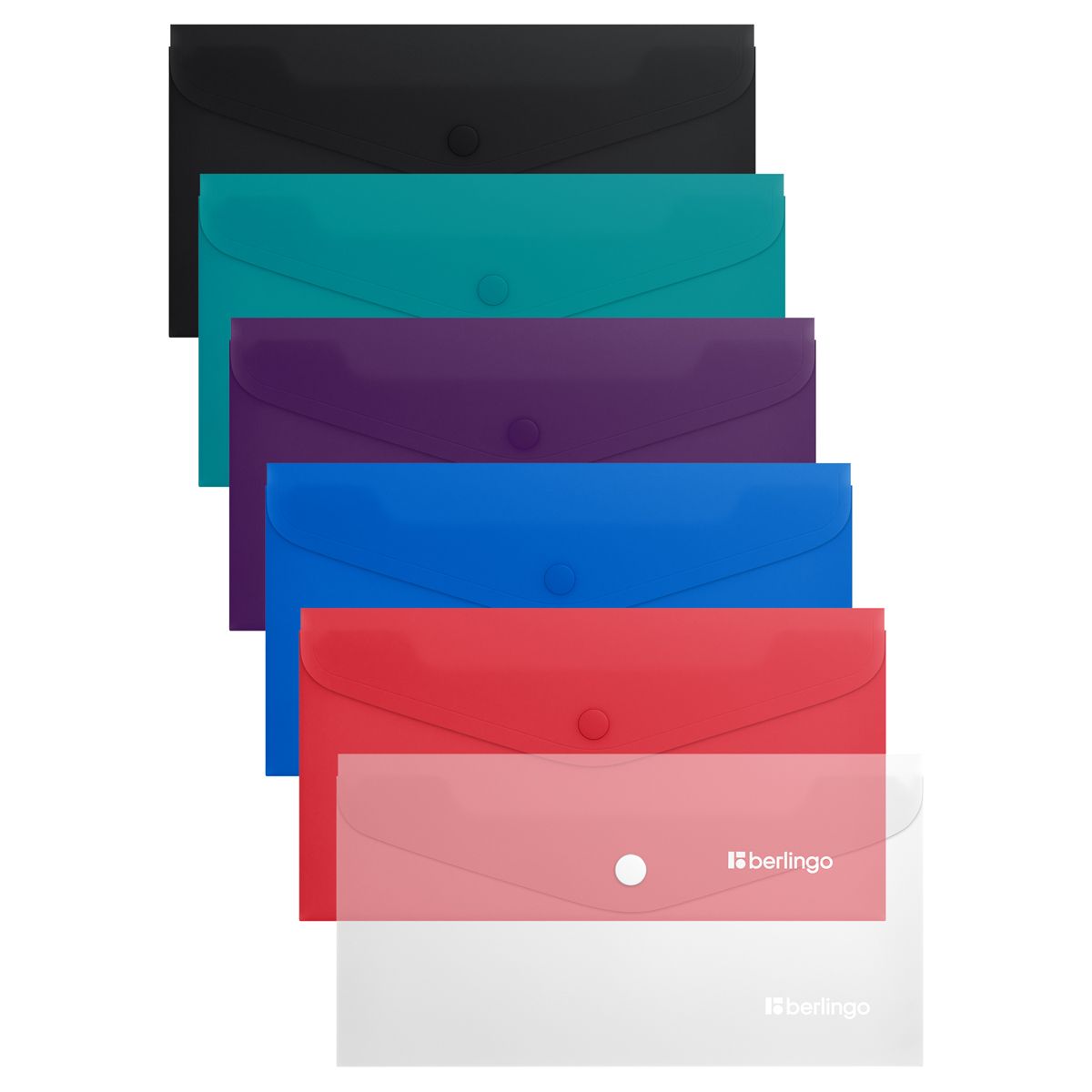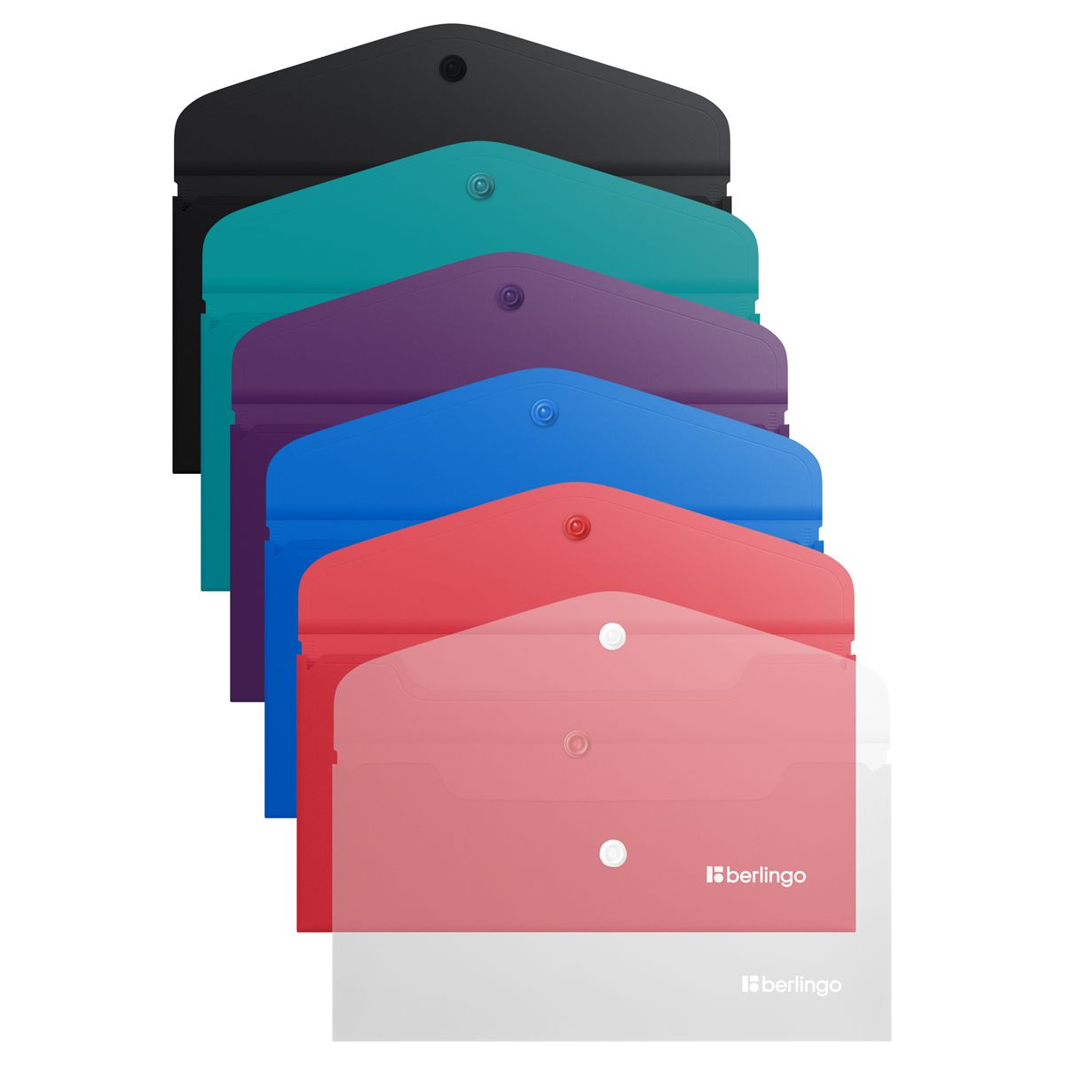 Папка-конверт на кнопке Berlingo "Soft Touch", C6, 200мкм, софт-тач, ассорти
