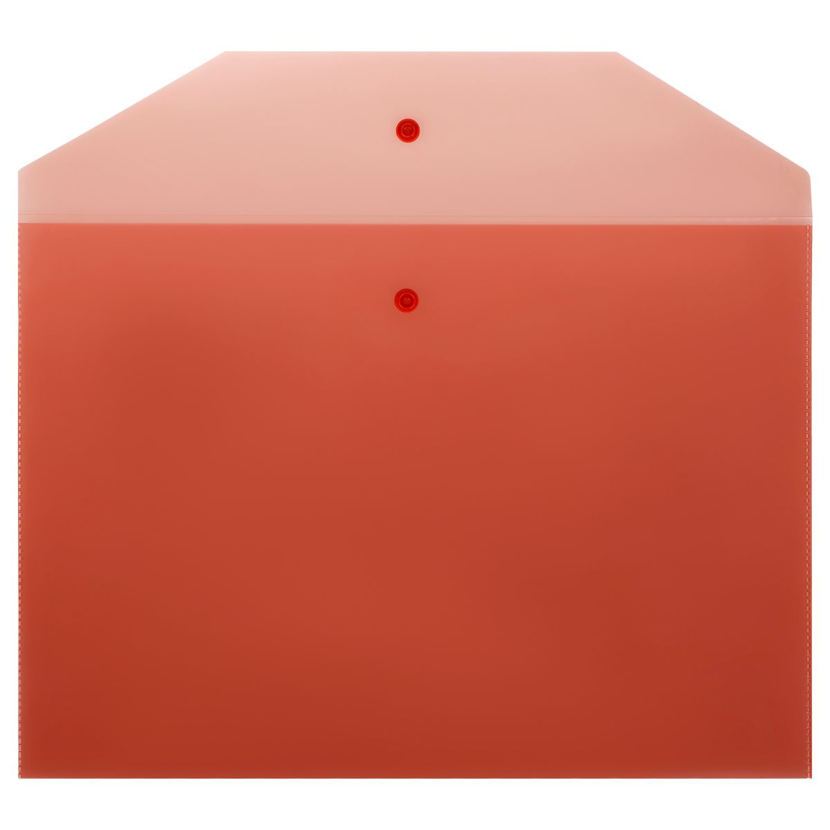 Папка-конверт на кнопке СТАММ А4, 120мкм, пластик, прозрачная, красная
