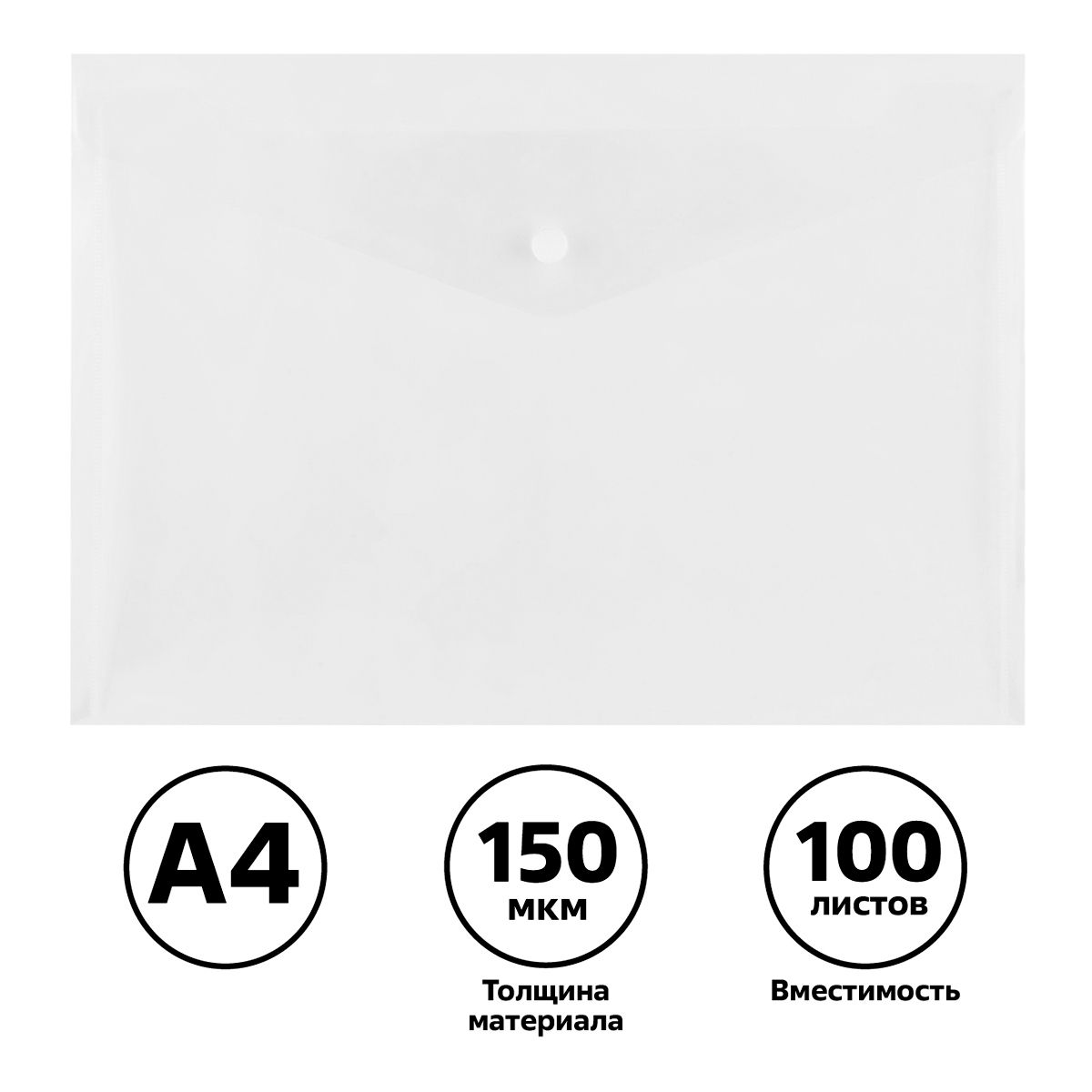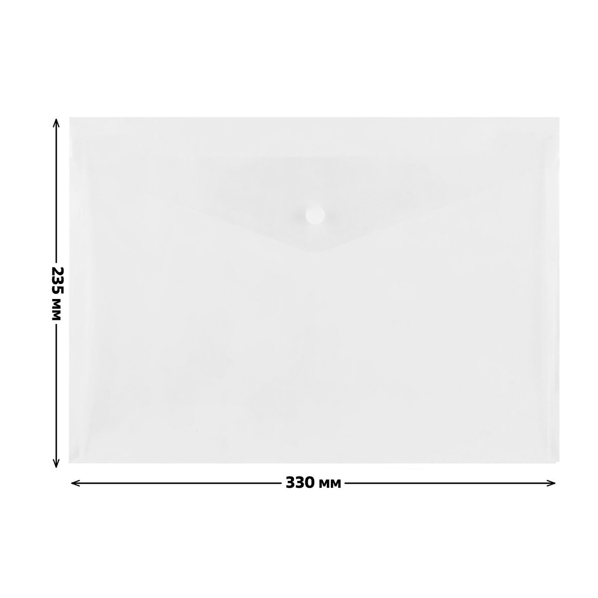 Папка-конверт на кнопке СТАММ А4, 150мкм, пластик, прозрачная, бесцветная