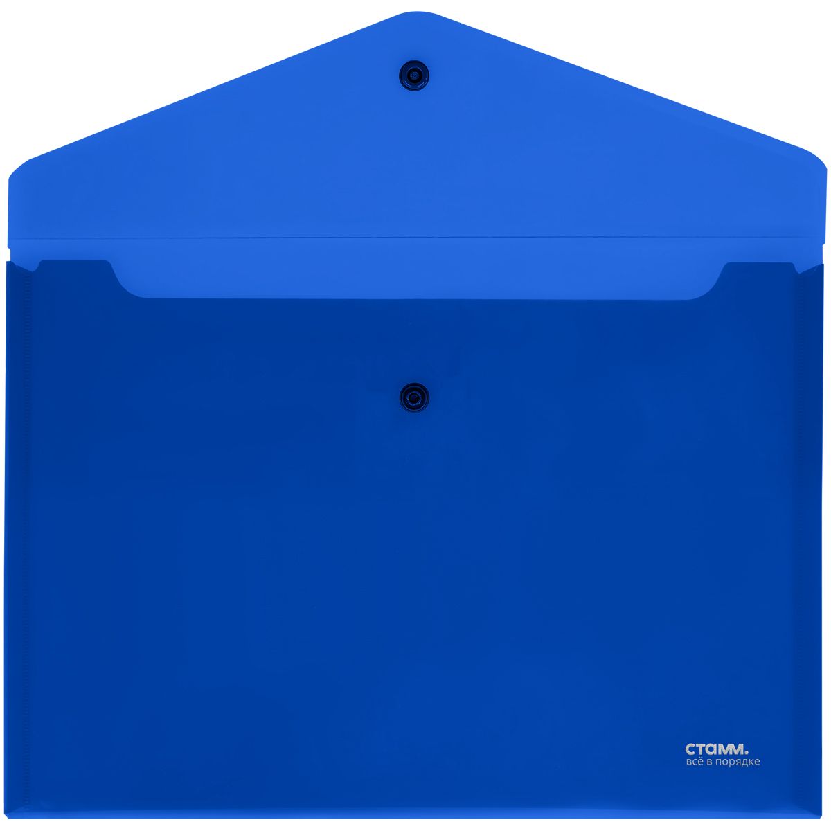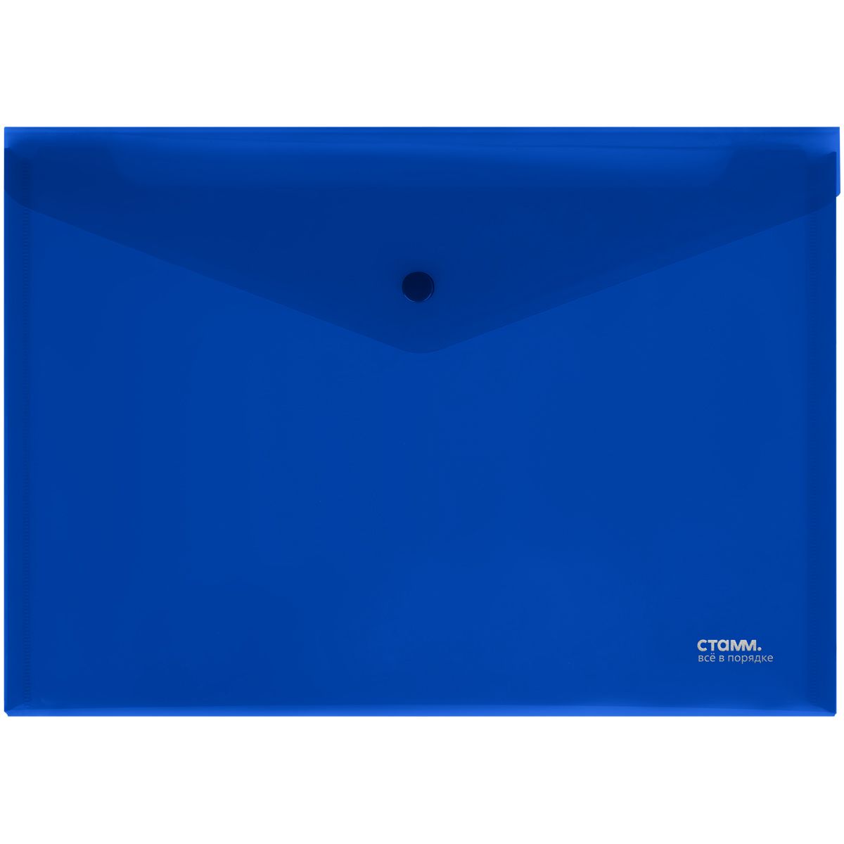 Папка-конверт на кнопке СТАММ А4, 180мкм, пластик, непрозрачная, синяя
