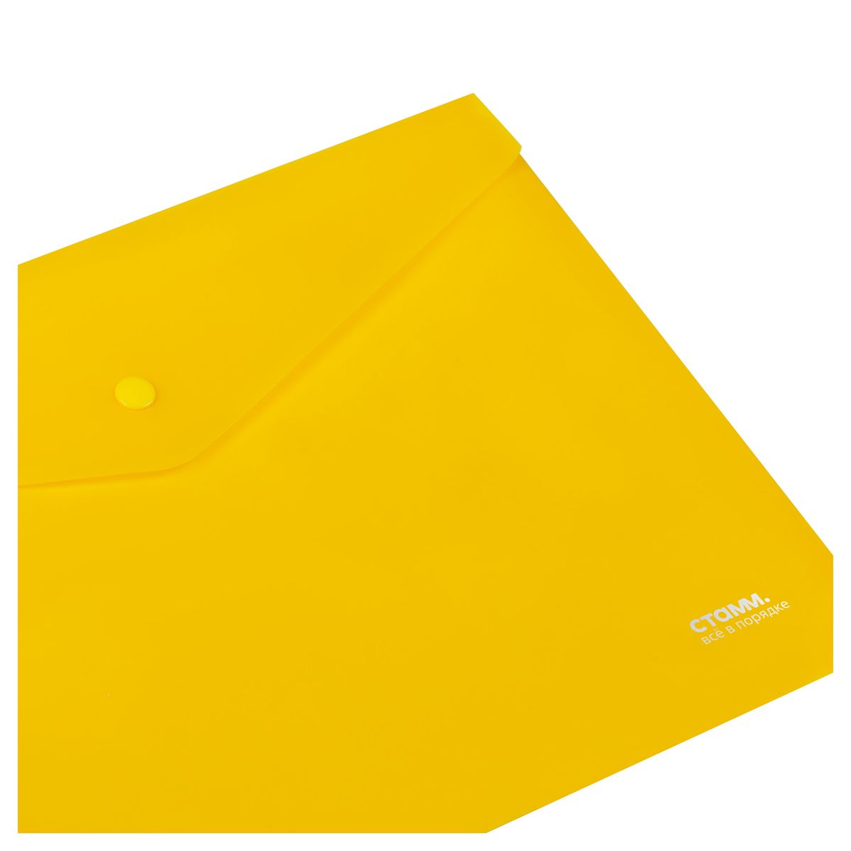 Папка-конверт на кнопке СТАММ А4, 180мкм, пластик, прозрачная, желтая