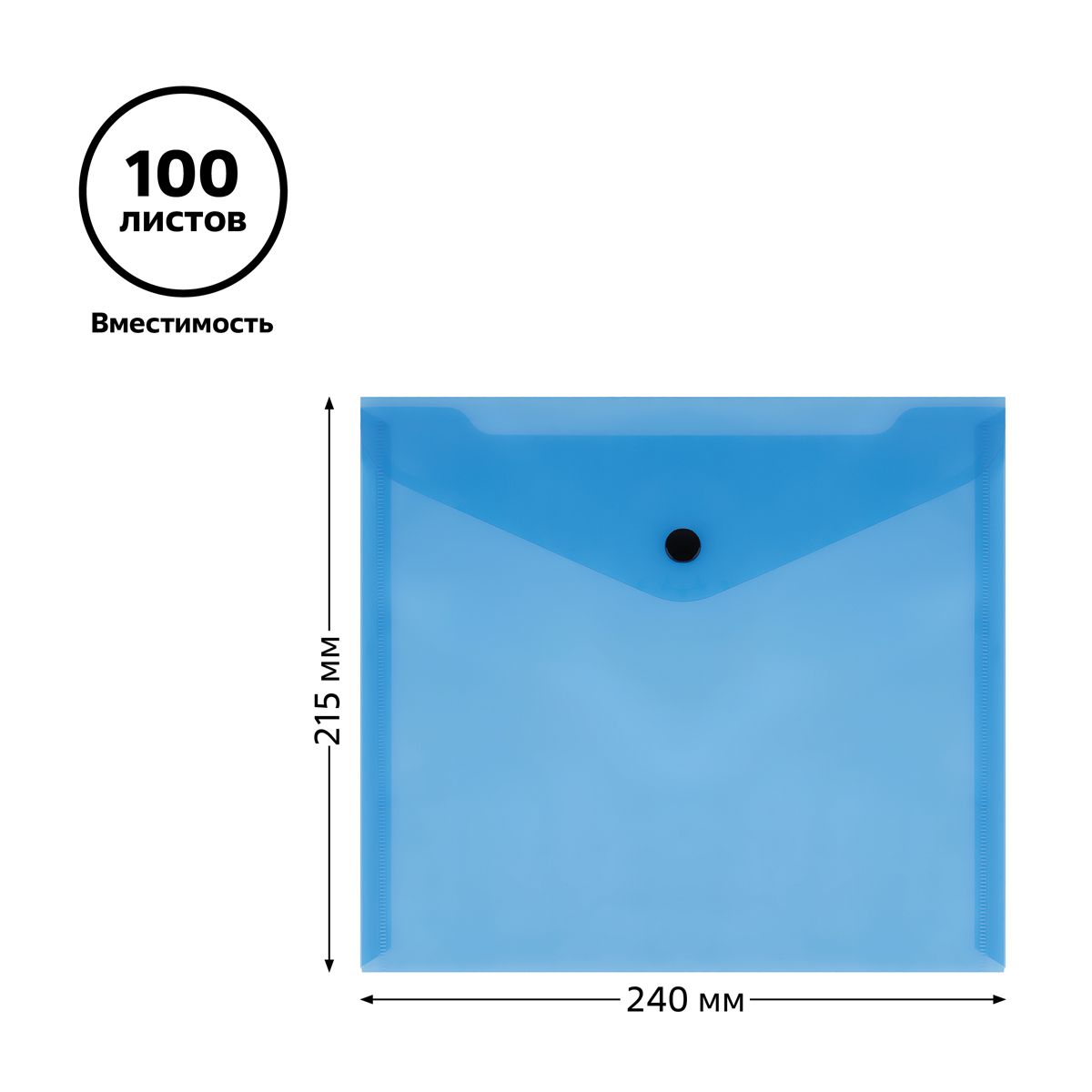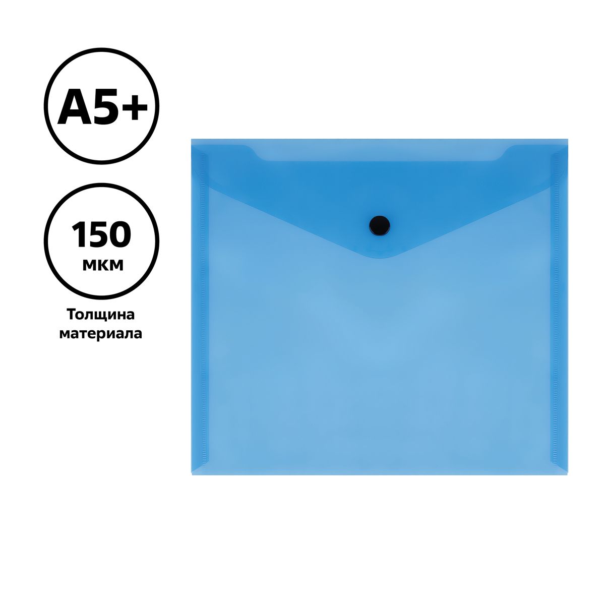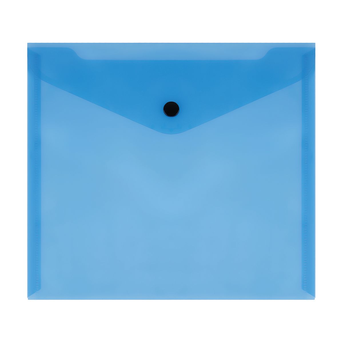 Папка-конверт на кнопке СТАММ А5+, 150мкм, пластик, прозрачная, синяя