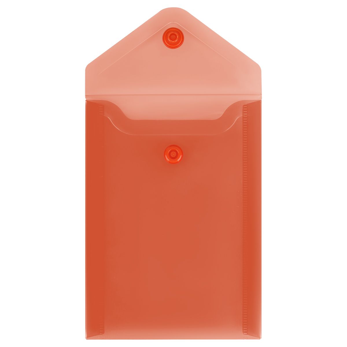 Папка-конверт на кнопке СТАММ А6 (105*148мм), 150мкм, пластик, прозрачная, красная