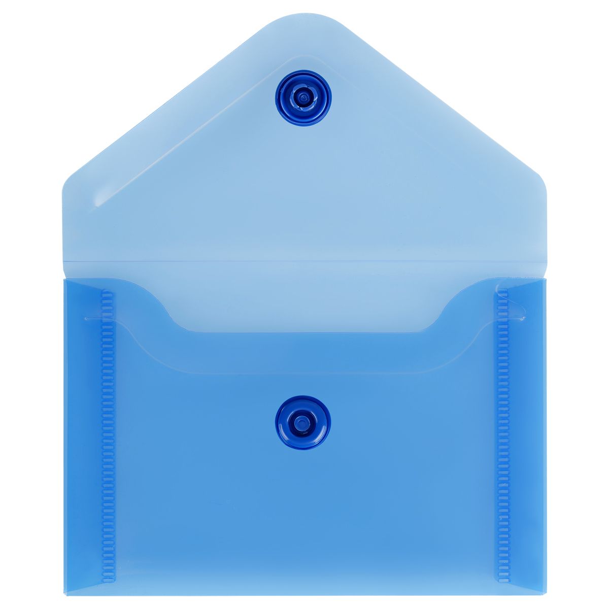 Папка-конверт на кнопке СТАММ А7 (74*105мм), 150мкм, пластик прозрачная, синяя