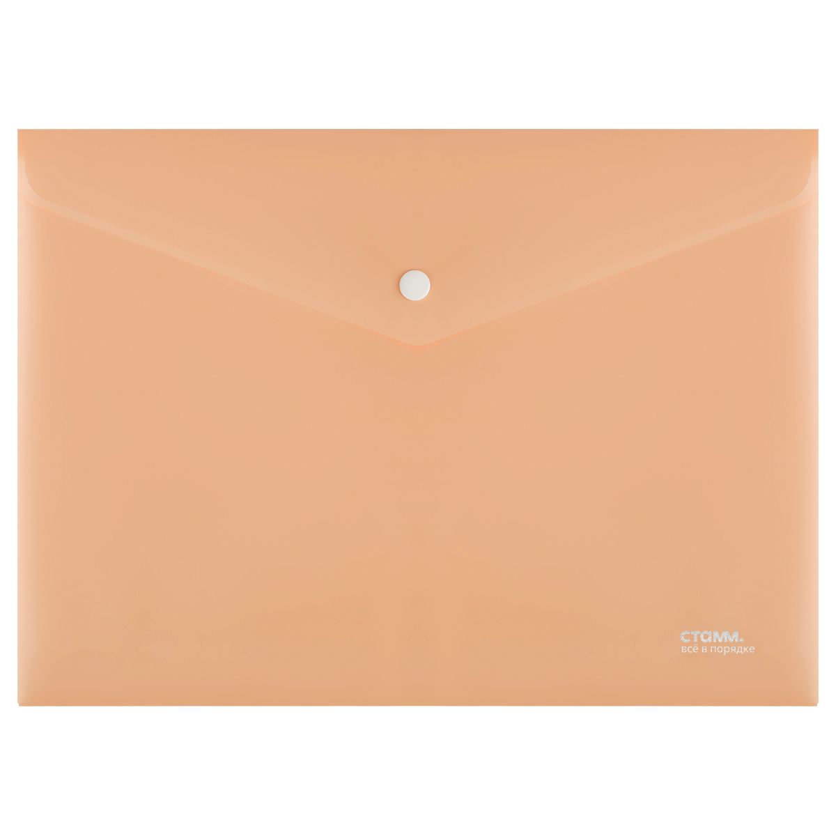 Папка-конверт на кнопке СТАММ "Акцент" А4, 180мкм, пластик, непрозрачная, персиковая