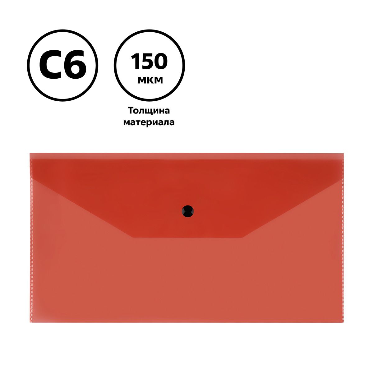 Папка-конверт на кнопке СТАММ С6+, 150мкм, пластик, прозрачная, красная