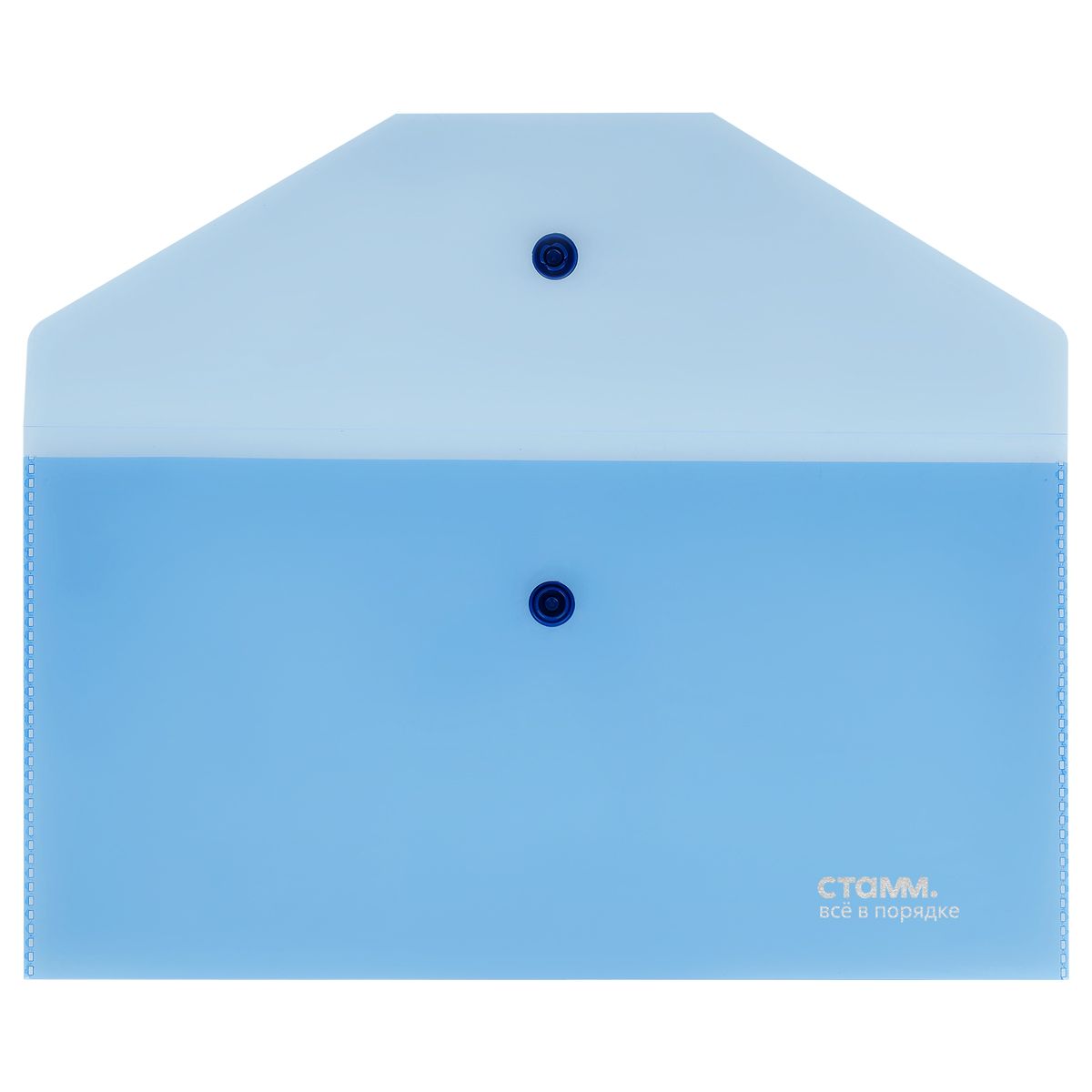 Папка-конверт на кнопке СТАММ С6, 180мкм, пластик, прозрачная, синяя