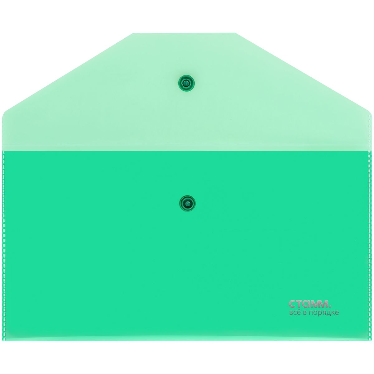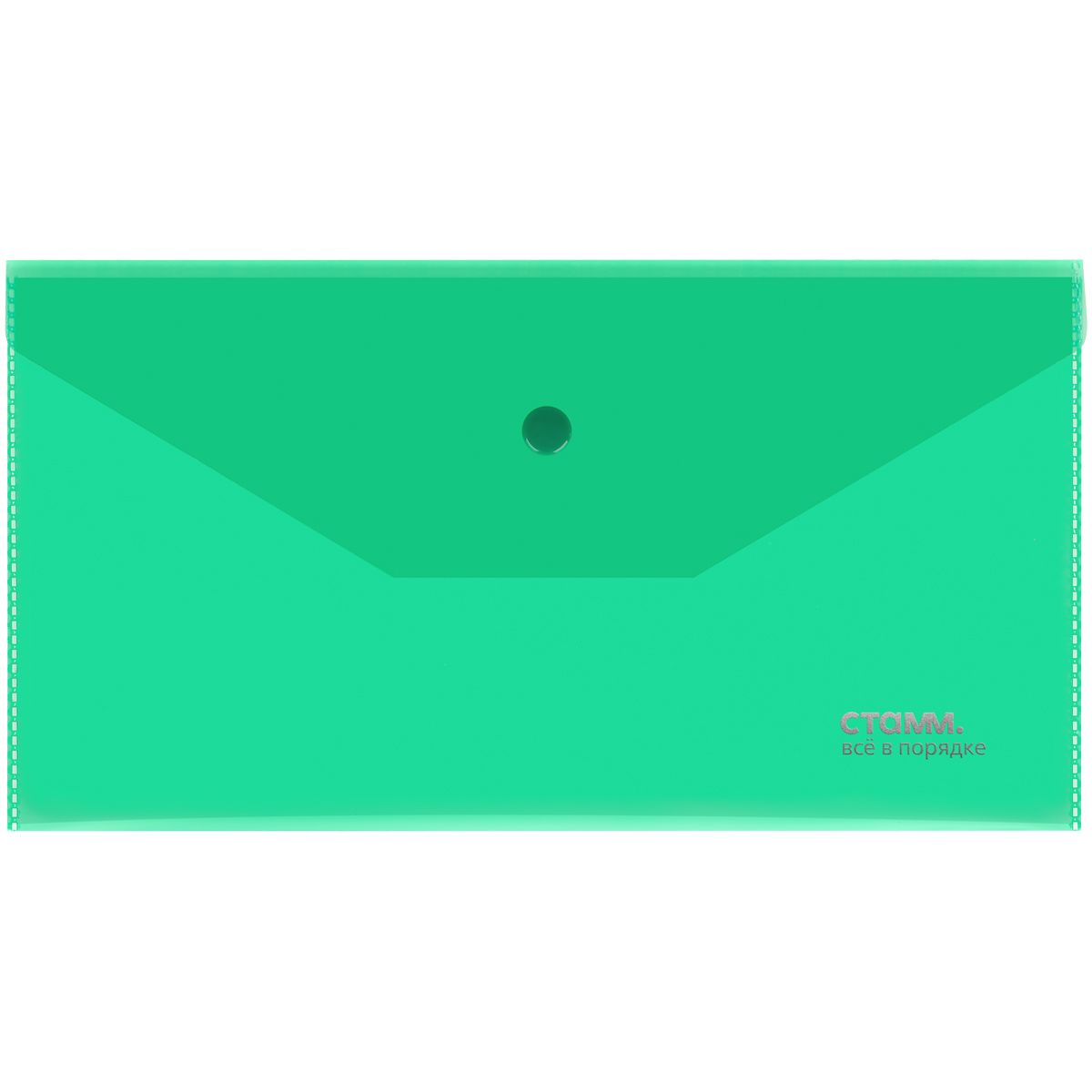 Папка-конверт на кнопке СТАММ С6, 180мкм, пластик, прозрачная, зеленая