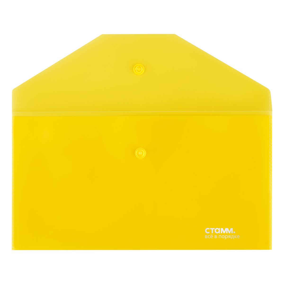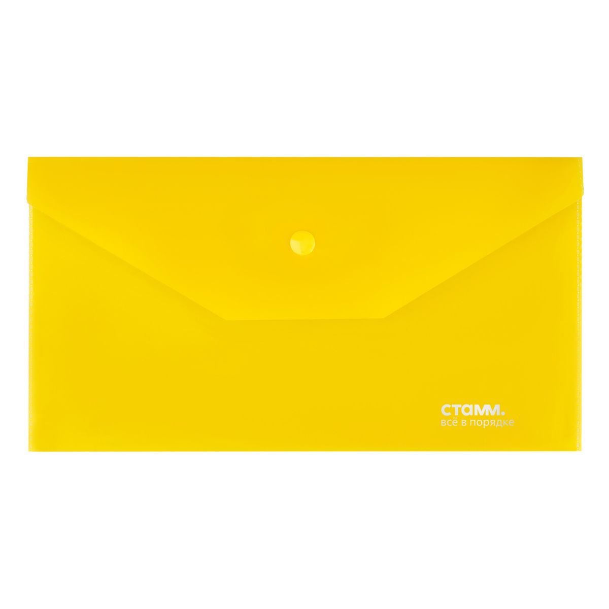 Папка-конверт на кнопке СТАММ С6, 180мкм, пластик, прозрачная, желтая
