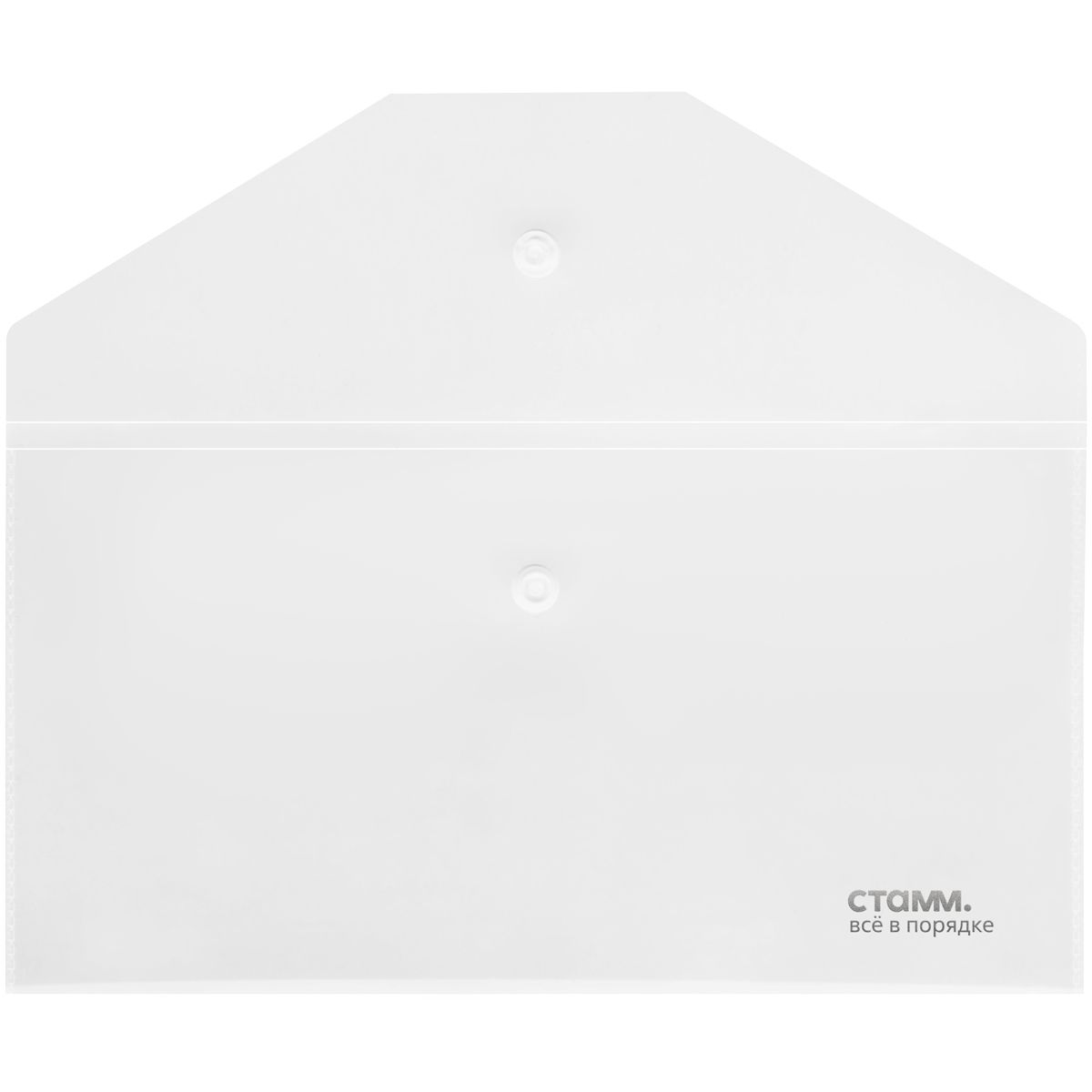 Папка-конверт на кнопке СТАММ С6, 180мкм, пластик, прозрачная