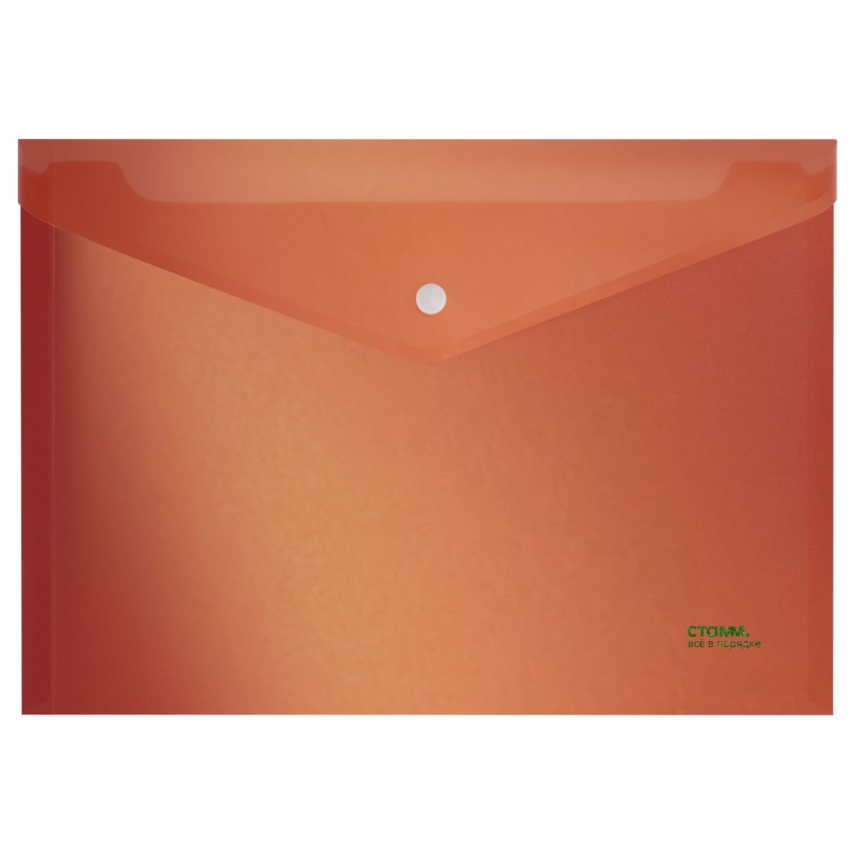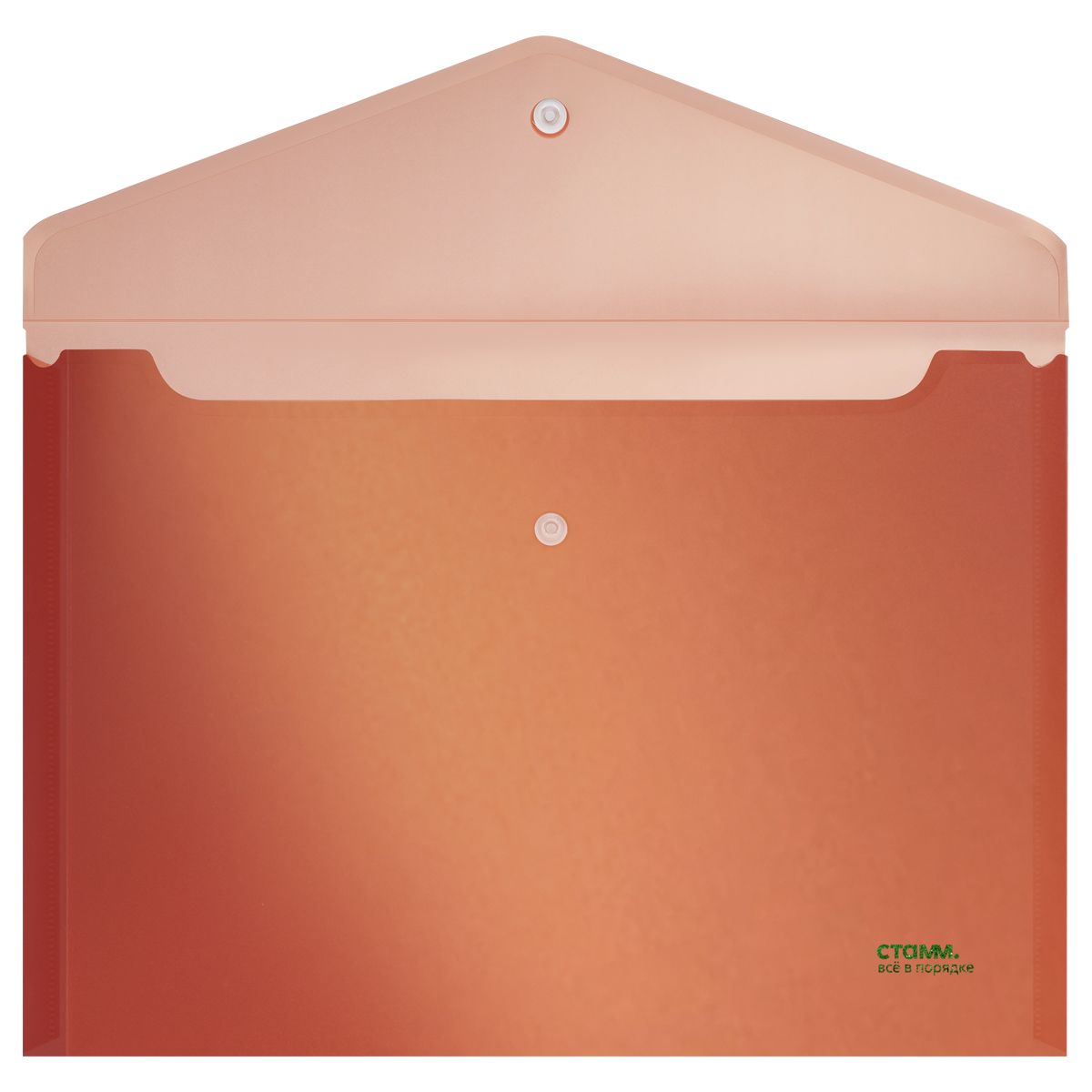 Папка-конверт на кнопке СТАММ "Сияние" А4, 180мкм, пластик, непрозрачная, оранжевый