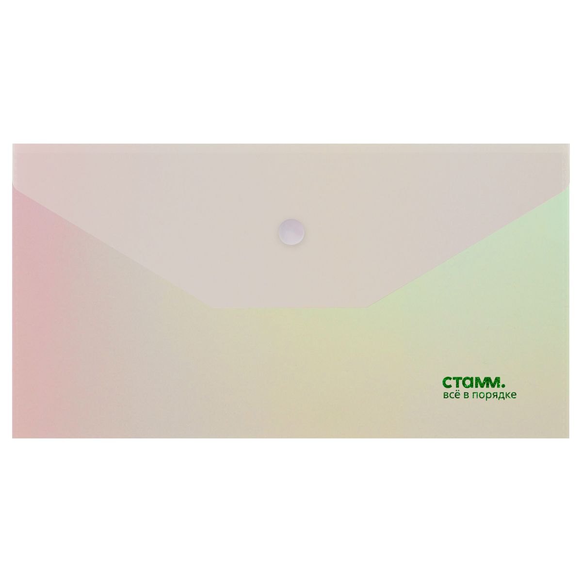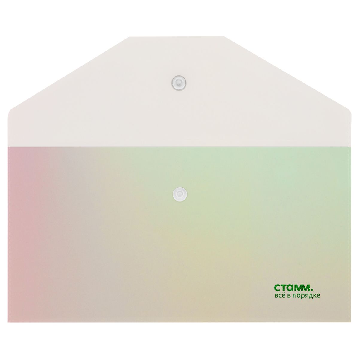 Папка-конверт на кнопке СТАММ "Сияние" С6, 180мкм, пластик, непрозрачная, белый