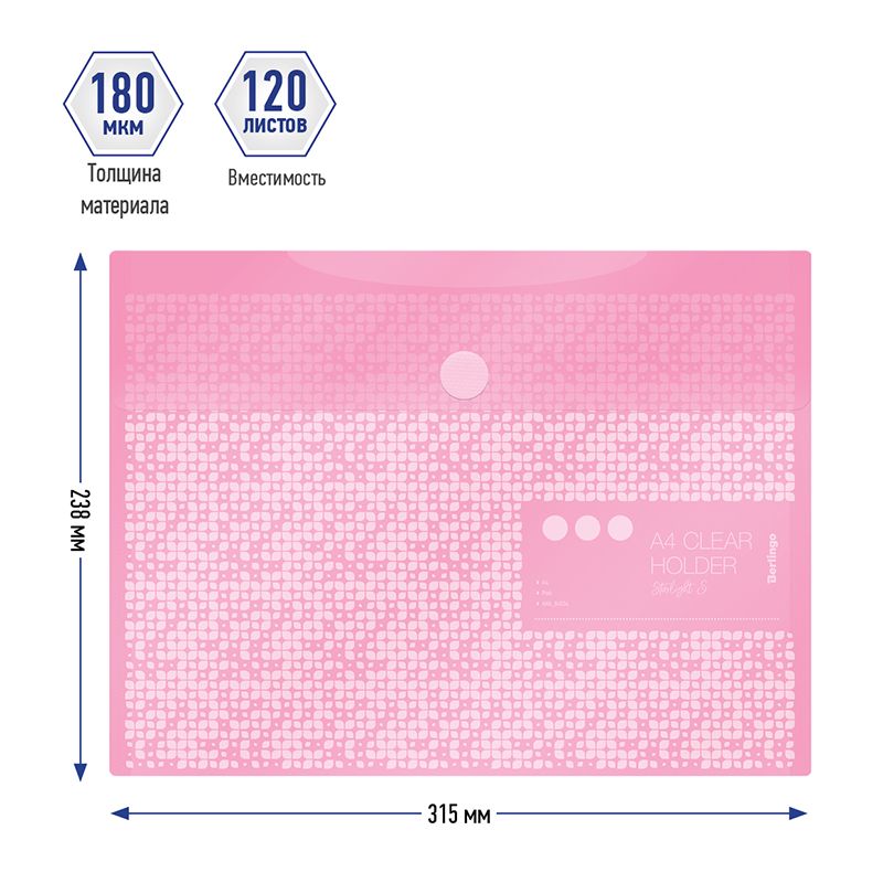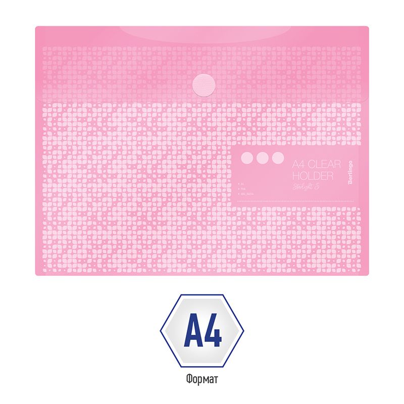 Папка-конверт на липучке Berlingo "Starlight S" А4, 180мкм, пастель, розовая