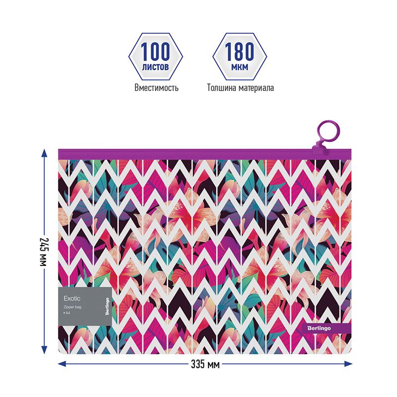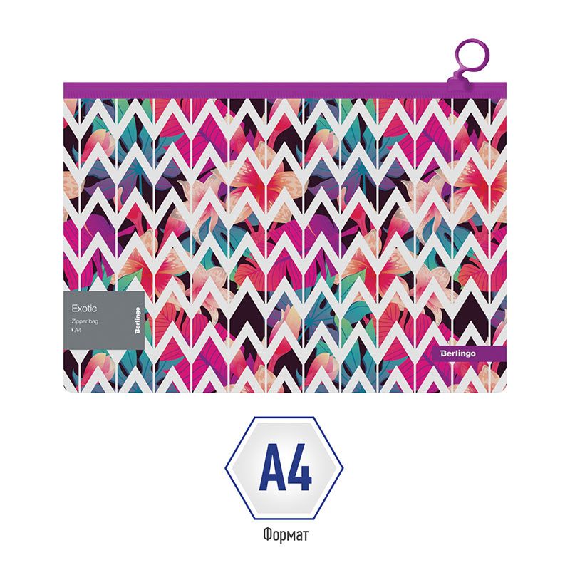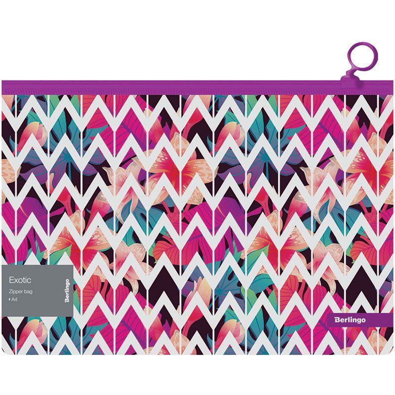 Папка-конверт на молнии Berlingo "Exotic" А4, 180мкм, с рисунком