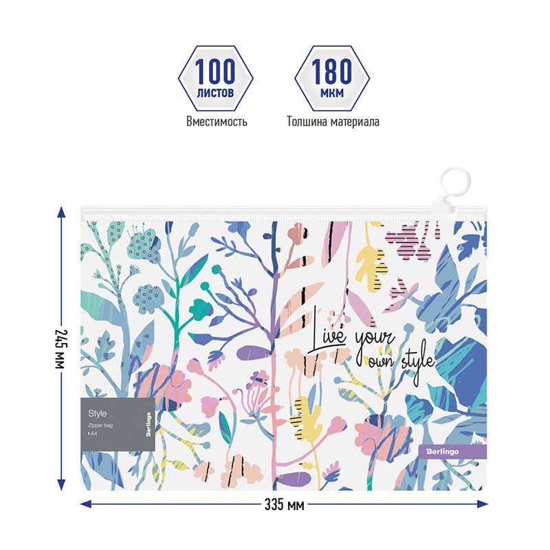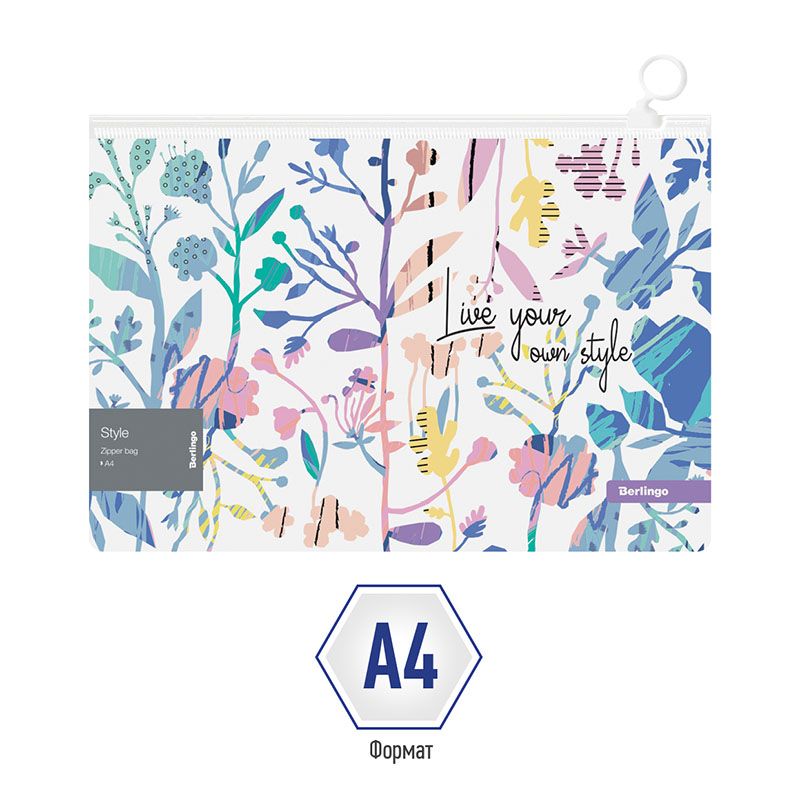 Папка-конверт на молнии Berlingo "Style" А4, 180мкм, с рисунком