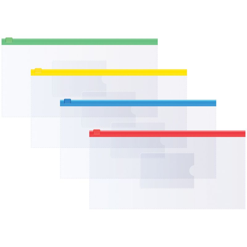 Папка-конверт на zip-молнии OfficeSpace 255*130мм, ПВХ, 120мкм, прозрачная, цветная молния, карман, для ж/д и авиа билетов, ассорти