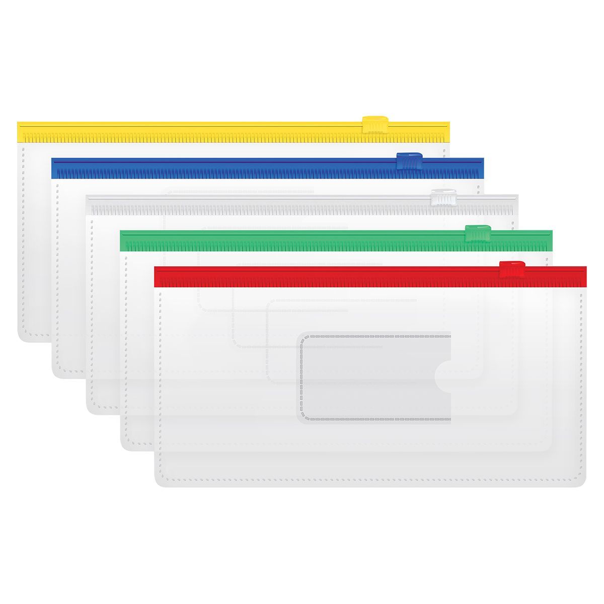 Папка-конверт на zip-молнии СТАММ 255*130мм, ПВХ, 120мкм, прозрачная, цветная молния, карман, для ж/д и авиа билетов, ассорти